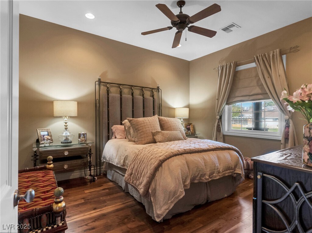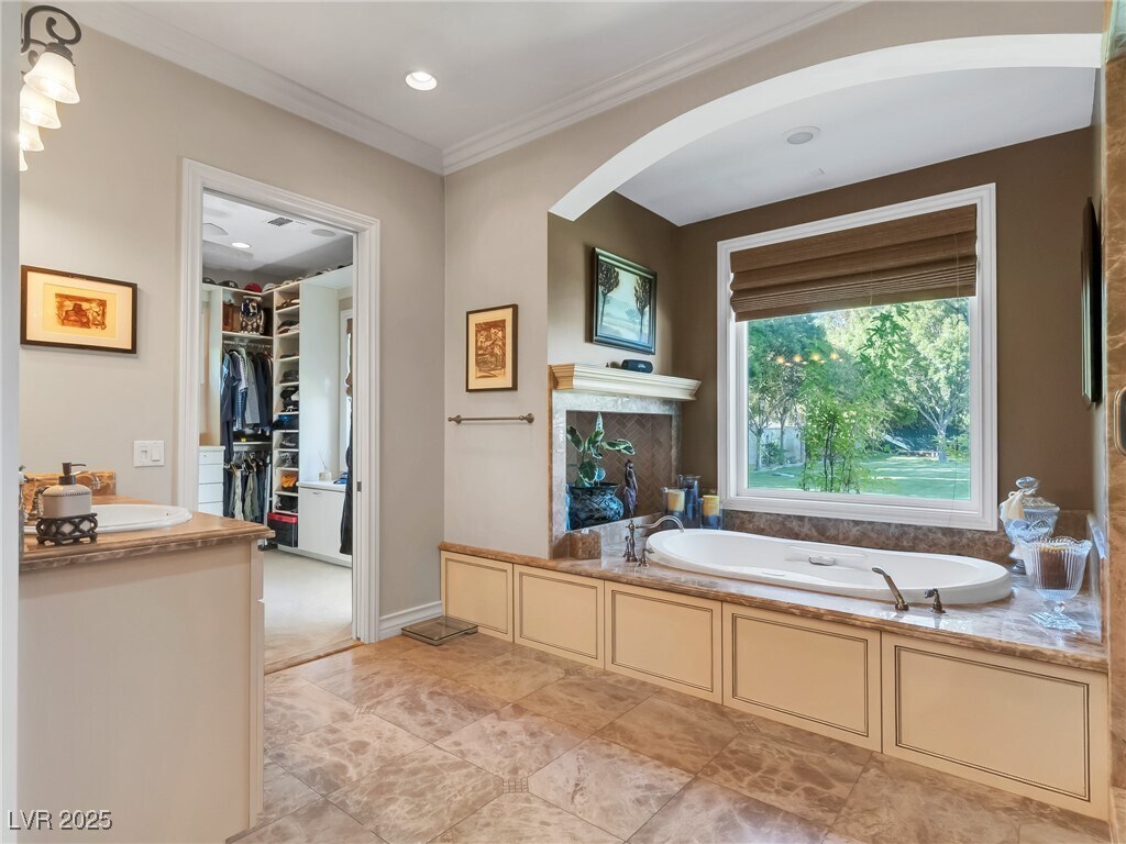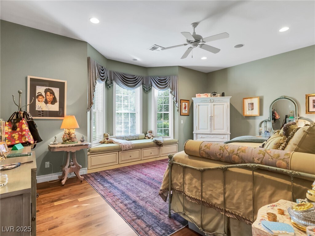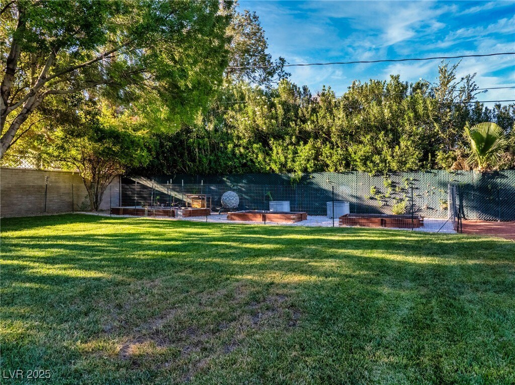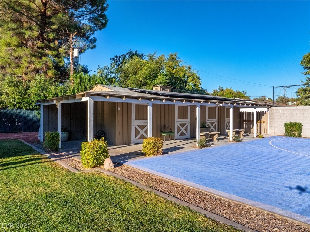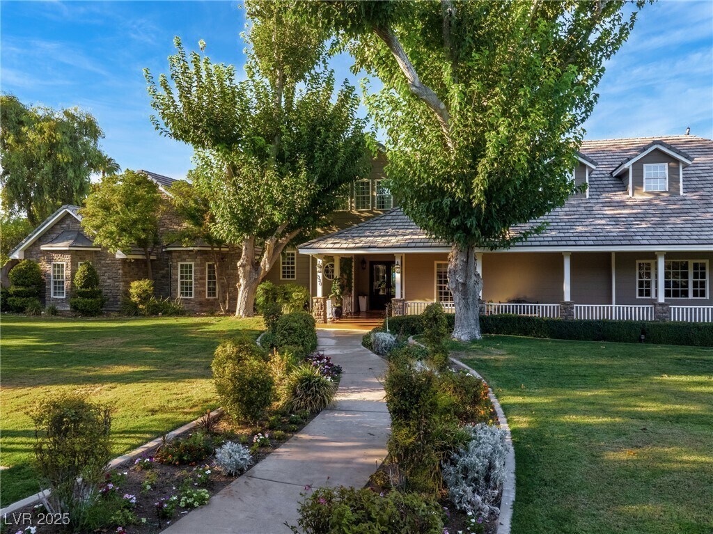 Prestigious, guard-gated, meticulously designed estate with 1.5 Acres of Lush Mature Landscaping all WATERED BY A WELL. This stunning property exudes elegance & sophistication in desirable, Historic Rancho Circle! Boasting 5 spacious bedrooms, 6 bathrooms, den, 2 offices, gym, home theater, music room, large walk-in closets and more. The gourmet kitchen has 2 pantries, commercial-grade appliances, custom cabinetry, breakfast nook, wet bar, perfect for entertaining. The 4-car garage has additional storage space. Natural light floods every room, highlighting all the exquisite finishes. The primary suite offers a retreat, access to the covered patio, spa-like en-suite bath, steam and 2 generous walk-in closets. The backyard offers a park-like setting with a putting green, large saltwater pool/spa, dog run, sport court, stage, BBQ, covered patio for alfresco dining, garden area, RV parking and more. Centrally located near Downtown, the Strip, fine dining, shopping entertainment and more.