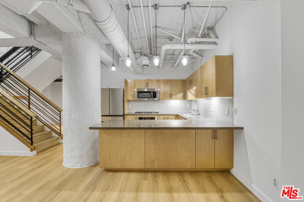 Two-Level Live/Work Loft at the trendy Grand Ave Lofts building with high ceilings, concrete floors, stainless steel appliances, a washer and dryer inside the unit, and a walk-in closet. Great unit for business use with a rare street entrance for easy access. Brand new floors just installed in the whole unit. 2 Parking spaces side by side included and access to all the many amenities on the building next door, including a pool, gym, volleyball court, basketball court, and much more. Located in South Park and a few blocks from Staples Center, LA Live, Whole Foods, and much more. MLS# 25526137