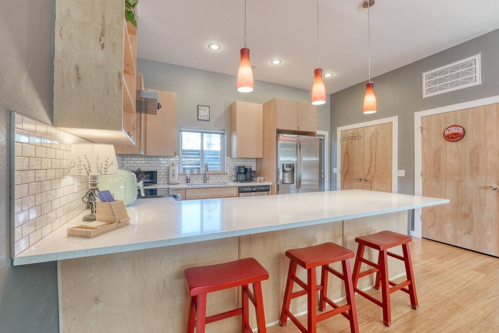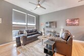Experience Fayetteville like a local in this chic 2-bedroom townhouse just steps from the University of Arkansas and lively Dickson Street. Enjoy stylish living spaces, a private patio, and all the comforts of home, perfect for Razorback game-days, family visits, and weekend escapes. All bedrooms and bathrooms are upstairs, requiring the use of stairs. The open-concept living room features plush sofas, a smart TV, board games, and throws. The fully equipped kitchen boasts stainless appliances, a Keurig, an air fryer, and a breakfast bar. Enjoy the private patio with seating and string lights, ideal for morning coffee or evening cocktails. Free parking is available both on the street and in a private lot. High-speed Wi-Fi, a washer and dryer with detergent, central heating and AC, board games, and coffee and tea are provided for your convenience. This condo is centrally located, just a short walk to Dickson Street’s restaurants, bars, and shops, and minutes from the University of Arkansas campus and Walton Arts Center. Nearby attractions include Razorback Stadium and Bud Walton Arena for game-day excitement, Fayetteville Square and Farmers Market, Botanical Garden of the Ozarks and Lake Fayetteville trails, and Crystal Bridges Museum, which is a 20-minute drive away. All bedrooms and bathrooms are upstairs, requiring the use of stairs. Exterior security cameras monitor entry points for your safety, with no cameras indoors. Quiet hours are from 9 PM to 8 AM to respect neighbors. Smoking and vaping are prohibited inside, and pets and parties are not allowed. The primary renter must be 18 or older, and a government ID may be requested. The home is professionally cleaned and sanitized between guests. The apartment includes high-speed Wi-Fi for a seamless remote work-friendly environment. [SI]