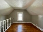 Beautiful hardwood floors throughout, laundry room with hook ups on the main level, spacious kitchen bonus loft upstairs and a full basement. Fridge and stove included. Backyard has a storage shed. Tenant pays all utilities, landscaping and snow removal. One year lease including fridge and stove. No security deposit, non-refundable move in fee instead of $700. Lease breakage fee applies. Application fee is non-refundable. Showings are only scheduled with approved applicants. Section 8 welcome. Traditional home with front porch, basement and 3 bedrooms.