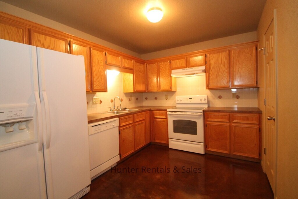 Well maintained 3 bedroom, 2 full bathrooms, one car garage with garage door opener. Chain link fenced yard. Enjoy living in this home with stained concrete floors throughout the home. The living room has raised ceiling with ceiling fan, the kitchen features plenty of cabinet space, flat surface stove, dishwasher and side by side refrigerator. The master bedroom features large walk in closet, raised ceiling and all bedrooms have ceiling fans. Other amenities are raised panel doors throughout, window treatments, security system, and sprinkler system. PRICE AND AVAILABILITY ARE SUBJECT TO CHANGE WITHOUT NOTICE. Application Information: * Offered by Hunter Rentals & Sales Visit our website, for an online application and to view complete listing information. Questions, call . * We do full background checks & are seeking qualified, long-term residents. To view our rental criteria, visit our website: * Application Fee: $65.00 each. * Security Deposit is due at lease signing. * Once approved, a one-time non-refundable administration fee of $125 will apply. The administration fee is due by the lease start date.
