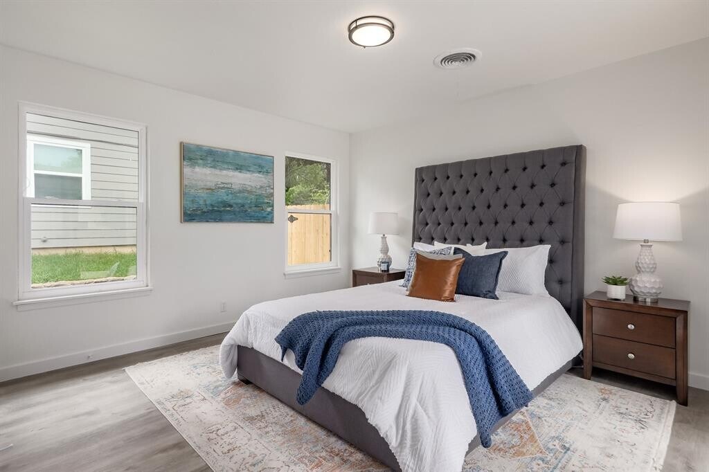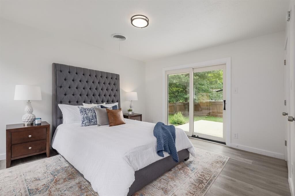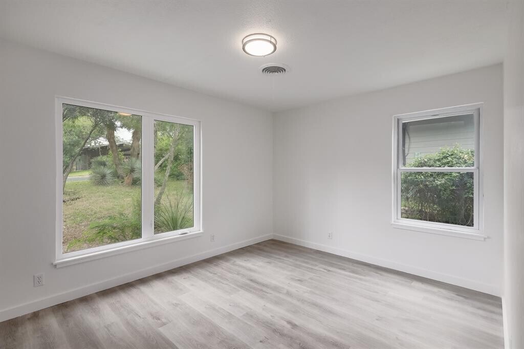 NOT AVAILABLE UNTIL 1/1/26. Charming 1-story ranch-style home located in the heart of southeast Austin! This lovely property features a plethora of upgrades throughout, making it a true gem in the area. As you step inside, you'll immediately notice the warm and inviting atmosphere that flows seamlessly throughout the home. The spacious living room is filled with natural light from the new Pella windows, and features beautiful updated flooring, perfect for entertaining guests or relaxing with loved ones. Enjoy the gorgeous kitchen, updated with Taj Mahal quartzite countertops, LG stainless steel appliances, and plenty of storage space. Enjoy meals with family and friends in the adjacent dining area, which offers a cozy and intimate setting. The primary bedroom is a true oasis, complete with a luxurious en-suite bathroom featuring a walk-in closet. The additional bedrooms are spacious and well-appointed, with ample closet space and easy access to a beautifully updated bathroom. Outside, the expansive backyard is perfect for hosting barbecues, playing with the kids, or simply enjoying the beautiful Texas weather. With mature trees and plenty of space, this backyard is truly a private oasis. Located in a highly sought-after Austin neighborhood, this home backs to Mabel Davis park with easy access to hiking trails and is just minutes away from St. Edwards, popular shopping and dining destinations, and numerous outdoor activities. Roof recently replaced. Owner pays for monthly security system monitoring.