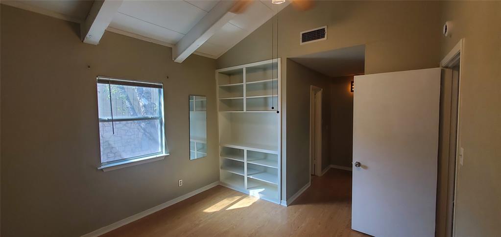 Don't miss this peaceful oasis in the city. This lovely, well-maintained South Austin 2BR/1.5BA home in a hidden quiet, mature, tree-lined, pocket neighborhood, yet with easy access to major roadways and services. It features a very functional floor plan with very high cathedral ceiling both in the main room and the primary bedroom. Large closets, private fenced backyard with refurbished deck inviting you to peacefully sit and enjoy coffee or a meal with friends among the mature live oak trees. Primary bedroom and bath are upstairs, while second bedroom and half bath are n the main floor. The setting makes it feel like you're living outside the hustle of the city even though it is minutes away. Located near Ben White 71, Menchaca, Lamar, and South 1st St, providing easy access to many restaurants and a full array of services including Target, Central Market South, Radio Coffee, and all of the services along S. Lamar. Truly a wonderful place to call home.