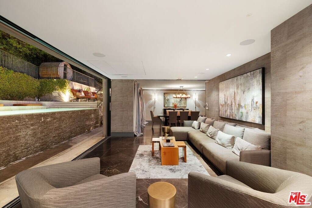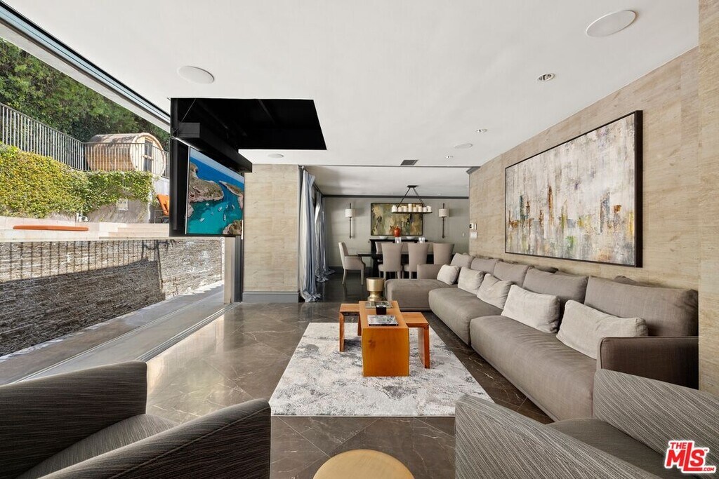 Available for lease or for sale at $2,848,000, this 3,558 sq.ft. ivy-covered Spanish estate near Lake Hollywood offers a rare opportunity to live in one of the Hollywood Hills' most desirable settings. Blending architectural character with modern refinement, the home features a step-down living room with an original oversized fireplace and picture windows framing views of mature landscaping. The formal dining room opens to a family and media room with a concealed drop-down rotating TV and pocket sliding doors that lead to private outdoor living spaces. The kitchen is outfitted with SubZero, Miele, and Wolf appliances, a center island, and a breakfast area with French doors that open to a full outdoor kitchen designed for entertaining. Each en-suite bedroom is individually designed with premium finishes, while the primary suite includes a spa-inspired bath, extensive closets, and a large terrace overlooking the gardens, infinity-edge pool, and hills beyond. A flexible bonus room provides space for a gym, nursery, or additional bedroom. Smart home technology includes a Control4 system, Sonos sound, Nest climate control, outdoor surveillance, and iAqualink pool and spa management. The grounds feature a reverse infinity-edge pool and spa, stone water wall, firepit, multiple terraces, outdoor dining and lounge areas, an outdoor shower, built-in BBQ, and a flat grassy area with a dog run, all maintained by a Rachio smart irrigation system. Offered fully equipped and move-in ready, The Knoll House delivers a private, resort-quality experience ideal for those seeking exceptional luxury and comfort on a lease basis. Unfurnished will INCREASE monthly rental amount to approx. $15K/mo. Seller must pay for moving and monthly storage costs. MLS# 25615751
