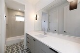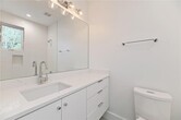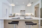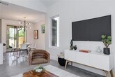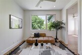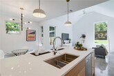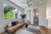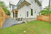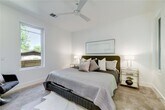This bright and spacious home features an open floor plan with modern design and high-end finishes throughout. The living area boasts expansive windows and vaulted ceilings, creating a light-filled, airy space. The fully equipped kitchen includes an oversized quartz center island, custom cabinetry, and premium stainless steel Bosch appliances—perfect for both everyday living and entertaining. The downstairs primary suite offers comfort and convenience with two generous closets. Upstairs, you’ll find additional bedrooms, two full bathrooms, and a versatile den/office space. Outdoor living is just as impressive, with a huge front yard and a private, fenced-in backyard complete with lush Bermuda grass, a full sprinkler system, and a covered porch for relaxing or entertaining.