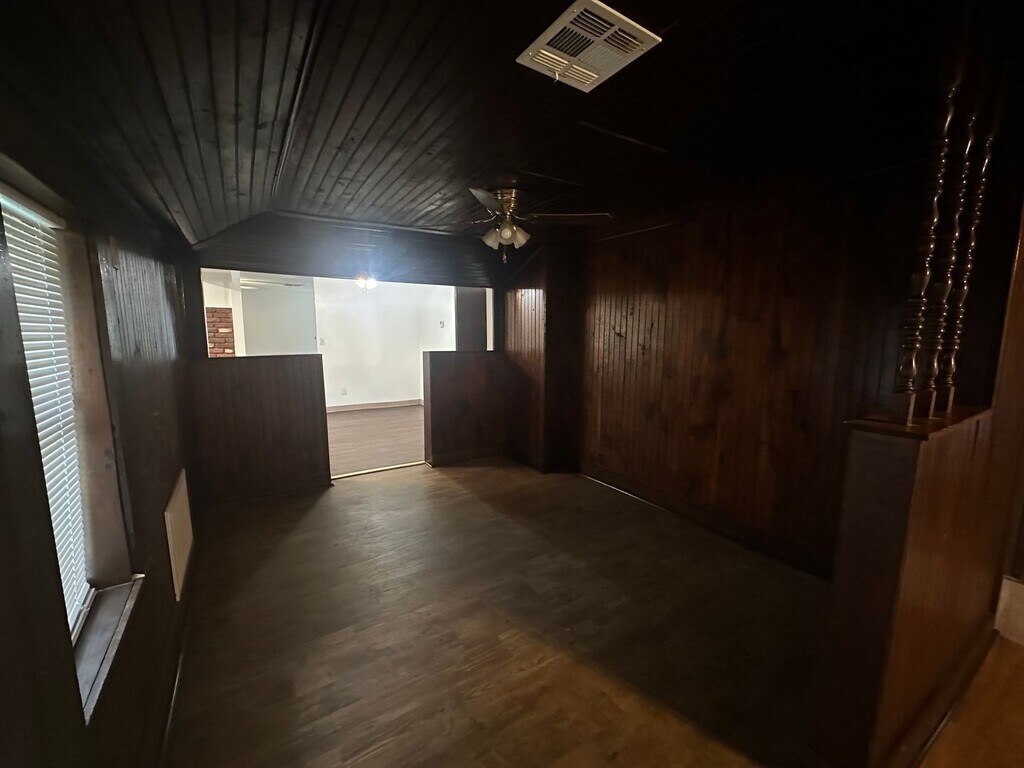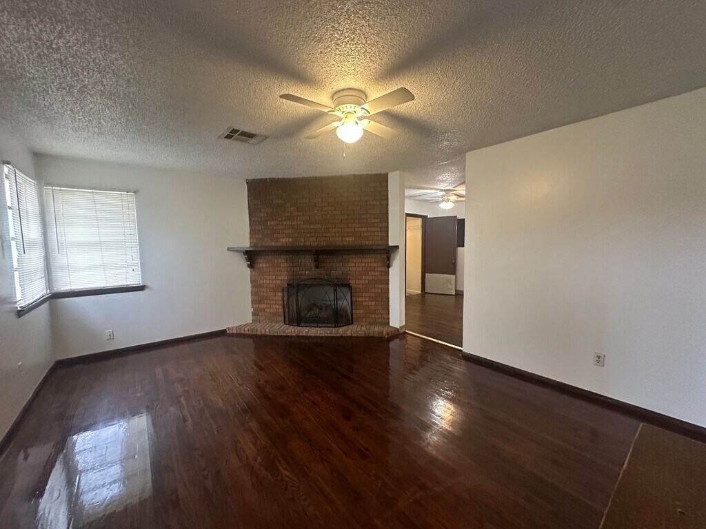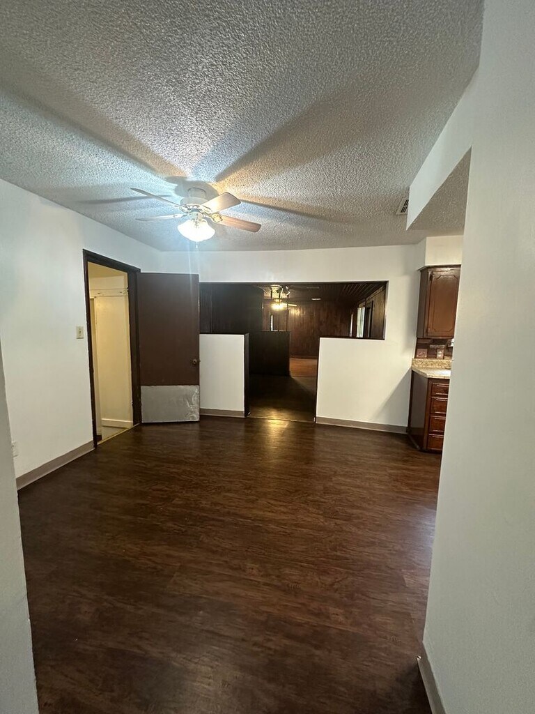 Welcome to this 4-bedroom, 2-bath home in Oklahoma City offering versatile living space and practical amenities. The layout includes two living areas and two dining areas, providing room for casual and formal use. Hardwood floors flow throughout, complemented by ceiling fans in every room and a living-room fireplace. The kitchen features a gas stovetop and dishwasher, and the home has central heat and air, well water, and washer/dryer hook-ups for convenience.