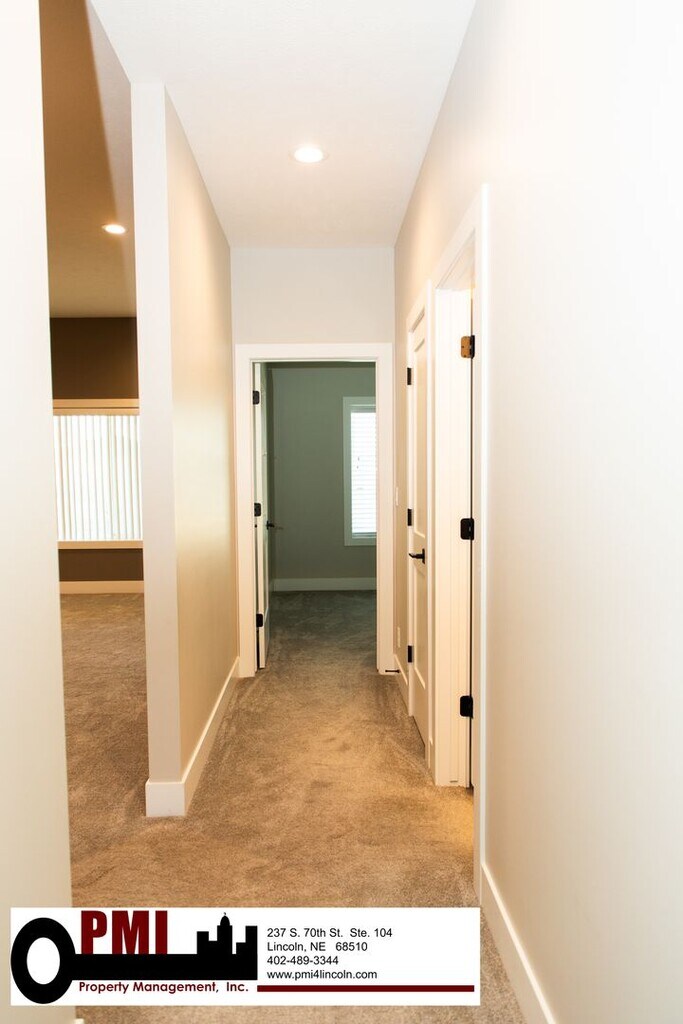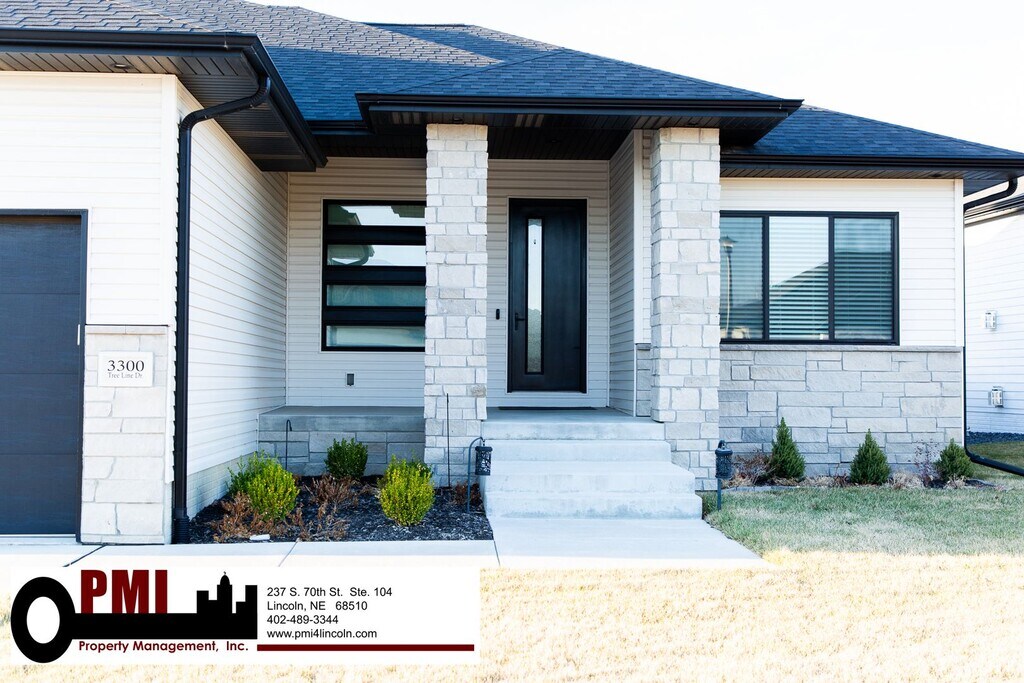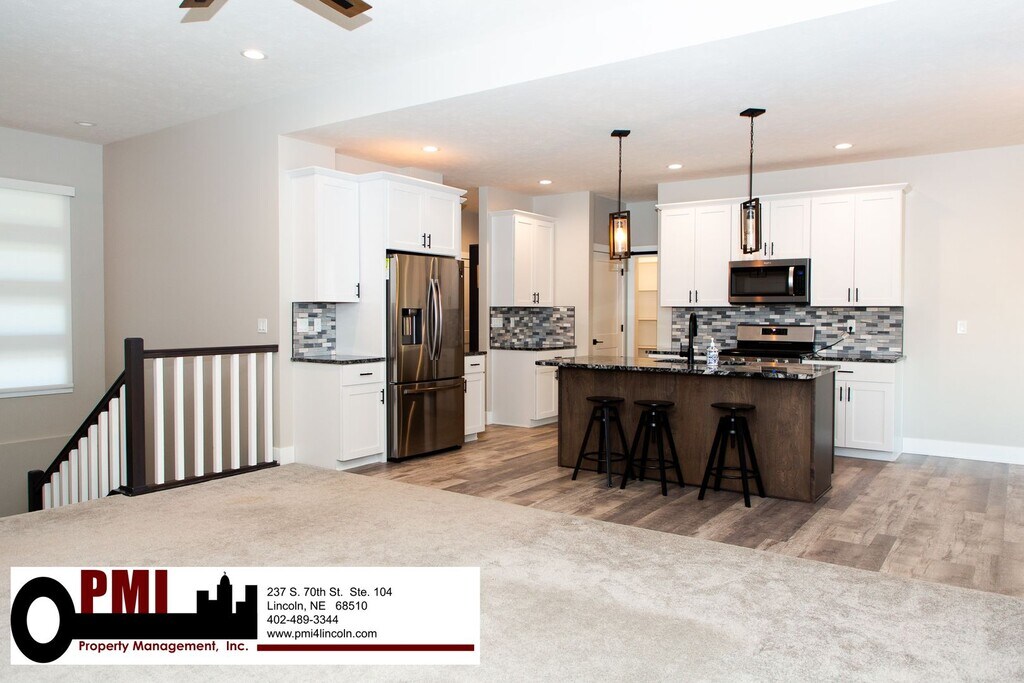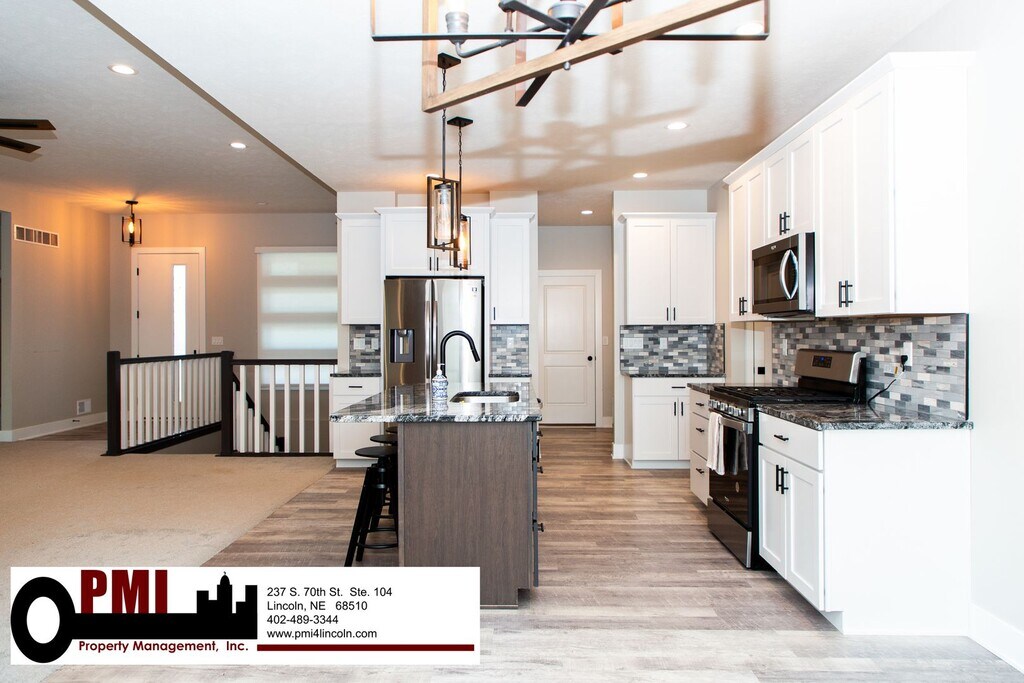 Newer ranch style house with 5-bedrooms, 3-bath home with a large Master walk-in closets for generous storage. Located in South Lincoln, NE. This home features a welcoming large front porch and a fenced yard with a backyard patio—ideal for outdoor enjoyment. Underground sprinkler system. Inside, space on the main level is efficiently maximized by open kitchen/living/dining. Beautiful kitchen features deep pantry, center Island with breakfast bar, granite countertop and laminated flooring for easy upkeep. Included appliances – stainless steel range/oven, dishwasher, microwave and refrigerator. The main living area includes a fireplace. Master bath also includes a double vanity, walk-in tile shower. Laundry is in a separate room on the main level. Mudroom with lockers separate the kitchen from the garage. You will find a full basement with a wet bar and a bonus non-conforming room that offers flexible space for hobbies or storage. A super sized 3-stall garage provides ample vehicle and equipment space. This property combines versatile indoor living areas with functional outdoor amenities. Quick access to many shopping and entertainment opportunities. You'll discover everything you want in a place to call home. Renters are responsible for all utilities (except refuse), lawn care and snow removal. No smoking. No Pets. Please visit our website at for additional rental options.