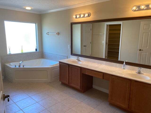 Large home on cornet lot in golf course community. Walking distance from the golf course and beautiful scenery. Gated community in Green Cove Springs. This home is complimented with a peaceful back yard with view of a pond. The home boast of high ceilings and no wasted space. The first floor has a guest bedroom with a bathroom. Spacious upstairs with large owner's suite. Owner's suite has a separate area for additional furniture which leads into a bathroom with a grand closet, garden tub, and separate stand up shower. Large driveway for your cars. Lawn service included. Large home on cornet lot in golf course community. Walking distance from the golf course and beautiful scenery. Gated community in Green Cove Springs. This home is complimented with a peaceful back yard with view of a pond. The home boast of high ceilings and no wasted space. The first floor has a guest bedroom with a bathroom. Spacious upstairs with large owner's suite. Owner's suite has a separate area for additional furniture which leads into a bathroom with a grand closet, garden tub, and separate stand up shower. Large driveway for your cars. Lawn service included.