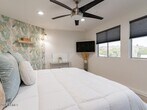 Discover your next rental home in this fully furnished three-bedroom,two-bathroom house that spans 2,633 square feet of comfortable living space. This property combines modern amenities with thoughtful design,featuring tile and wood flooring throughout that creates a seamless flow between rooms. The heart of the home showcases a kitchen island with eat-up bar seating,perfect for casual dining and conversation. Stainless steel appliances,including a gas range,make cooking a pleasure,while the formal dining area provides an elegant space for special occasions. Cozy evenings await by the gas fireplace,and the loft bedroom adds a unique touch to the home's character. The outdoor space truly shines as the property's crown jewel. Step into your private backyard oasis featuring synthetic grass for easy maintenance and year-round appeal. Entertainment possibilities are endless with a built-in barbecue,fire table surrounded by comfortable seating,and even a bocce ball area for friendly competition. The sparkling pool becomes your personal resort,complete with all pool toys included for immediate enjoyment. Adding to the property's appeal is an attached pool house that serves as a dedicated gaming area,perfect for hosting friends or creating a personal retreat. The large backyard provides ample space for gatherings,while the thoughtful outdoor amenities ensure every season brings new opportunities for relaxation and fun. This fully furnished home offers the rare combination of indoor comfort and exceptional outdoor living,making it ideal for those who appreciate both relaxation and entertainment in their living space. Just bring your clothes - everything else is provided for you! Also available unfurnished; ask for details.
