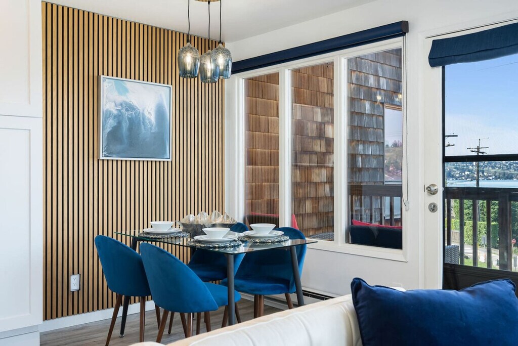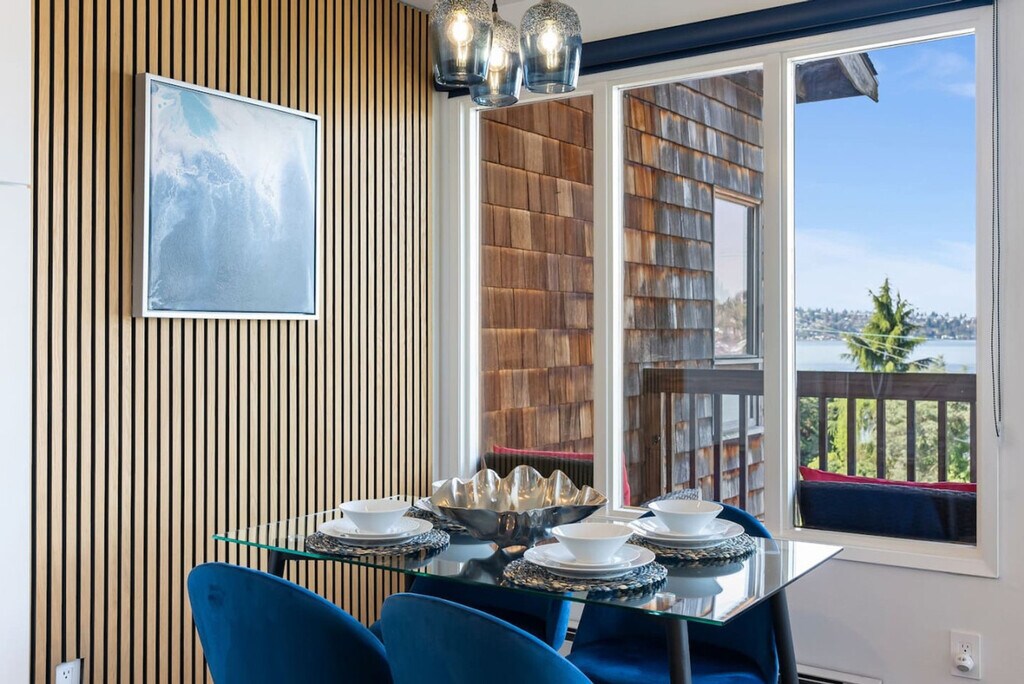 Discover your piece of paradise at Lake Washington with this exquisite 2-bedroom condo. Elevated on the second floor, this gem offers sweeping views of the lake from its private patio and living area. Feel at home with its open-concept living, full kitchen, and proximity to vibrant Seattle, Tacoma, Bellevue, and many other attractions. The plush sofa invites you to relax and feel the stresses of everyday life melt away. The adjacent dining area offers the perfect spot to gather with loved ones and enjoy a delicious meal prepared in the fully equipped kitchen. The true highlight is the private deck overlooking the stunning lake, where you can sip your morning coffee or unwind with a glass of wine as the sun sets. Enjoy free parking with two parking spaces available. If you prefer not to drive, there are many convenient transportation options nearby, including buses, taxis, Uber, and Lyft. The condo is located in Kennydale, a charming neighborhood nestled within the vibrant city of Renton, Washington. Situated along the shores of Lake Washington, Kennydale offers a picturesque blend of natural beauty, suburban tranquility, and convenient urban amenities. Enjoy easy access to various recreational activities, vibrant shopping centers, and nearby cities like Bellevue and Seattle. Early check-ins are not guaranteed and are subject to a fee of $25 per hour in advance of the check-in time. Late check-outs must be approved and are $50 per hour beyond the regular 11am check-out. A deep cleaning fee between $500-700 may apply if a party or event is held, and a $250 fee will apply for any smoking debris or smell identified. Quiet hours are from 10pm to 7am, with a $100 fine per incident for violations. Pets are not permitted to be left alone at any time in the rental. The condo is exclusively yours during your stay, so relax, unwind, and make yourself at home. We are accessible 24/7 for any inquiries. [SI]