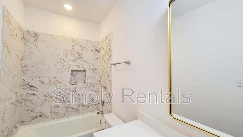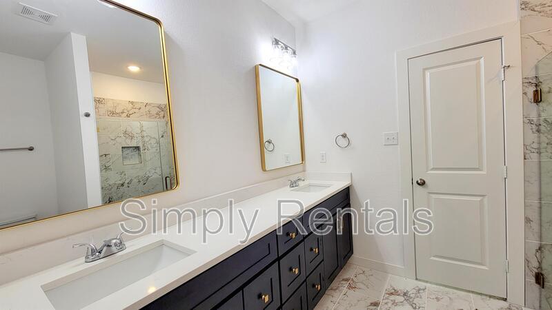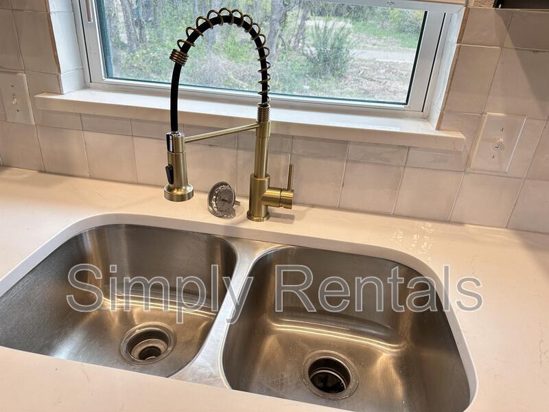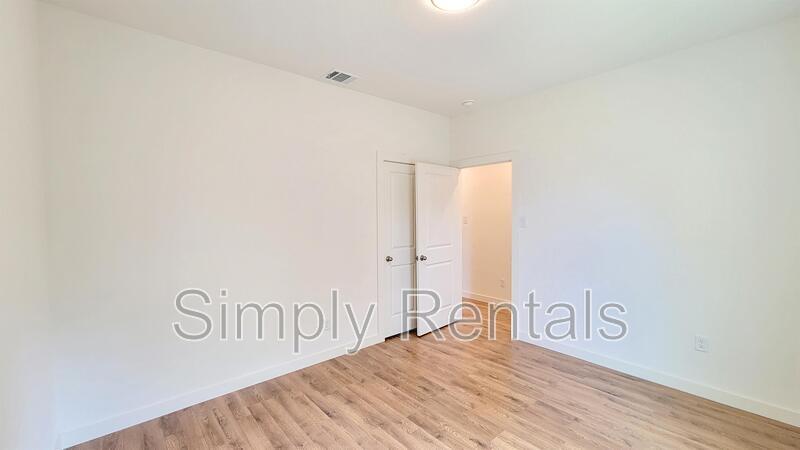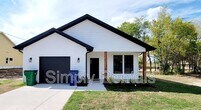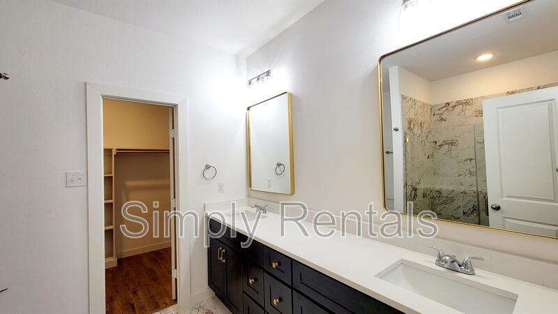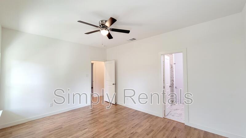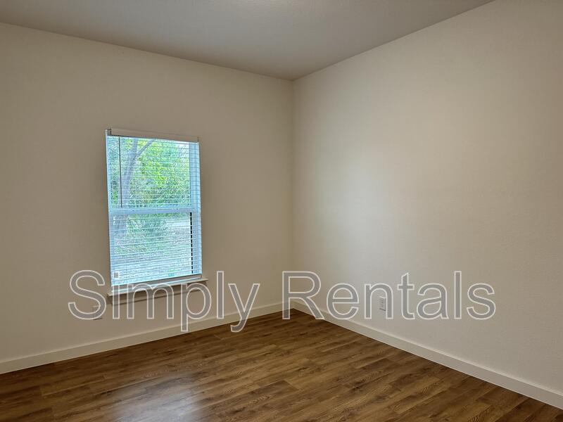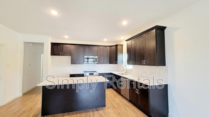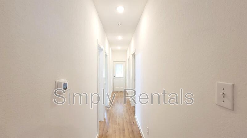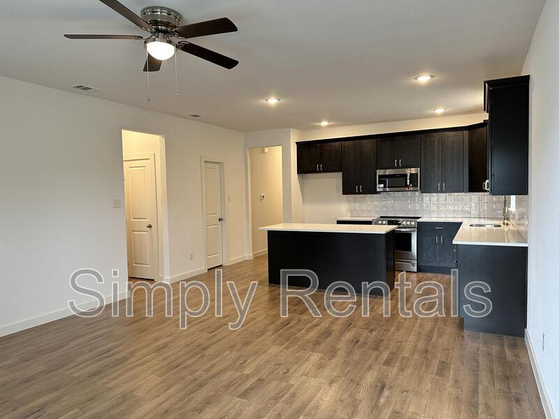 New completed construction. Large corner lot. quartz counters, black cabinets with gold accents, stainless appliances, Laminate flooring throughout, 1 car garage with gutters. New completed construction. Large corner lot. quartz counters, black cabinets with gold accents, stainless appliances, Laminate flooring throughout, 1 car garage with gutters. Washer dryer hookups. Wood faux blinds.
