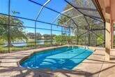 Beautiful single-story home for lease featuring a serene lake view and private pool,located on a cul-de-sac in a highly desired community. This residence offers just under 3,000 sq ft with 4 bedrooms plus den,3 bathrooms,and a 3-car garage. The open kitchen includes granite countertops,stainless steel appliances,a center island,built-in desk area,bar seating,and ample cabinetry. Multiple living spaces include a formal living room and a separate family room,providing flexibility for entertaining and everyday living. The primary bedroom overlooks the lake and offers direct access to the lanai. Interior features include coffered ceilings,crown molding,and tile flooring throughout. The outdoor area provides a screened lanai,pool,and surrounding landscaping for added privacy. Located within a top-rated school district and close to shopping and dining. Available on March 1st,2026.