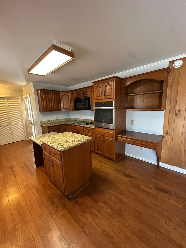 3-bedroom, 2-bath home with fireplace and built-ins in living room. Open kitchen/dining area with granite countertops and appliances included (refrigerator, oven, dishwasher, electric cooktop). Large fenced backyard with wood deck plus 1-car carport. Great space inside and out!