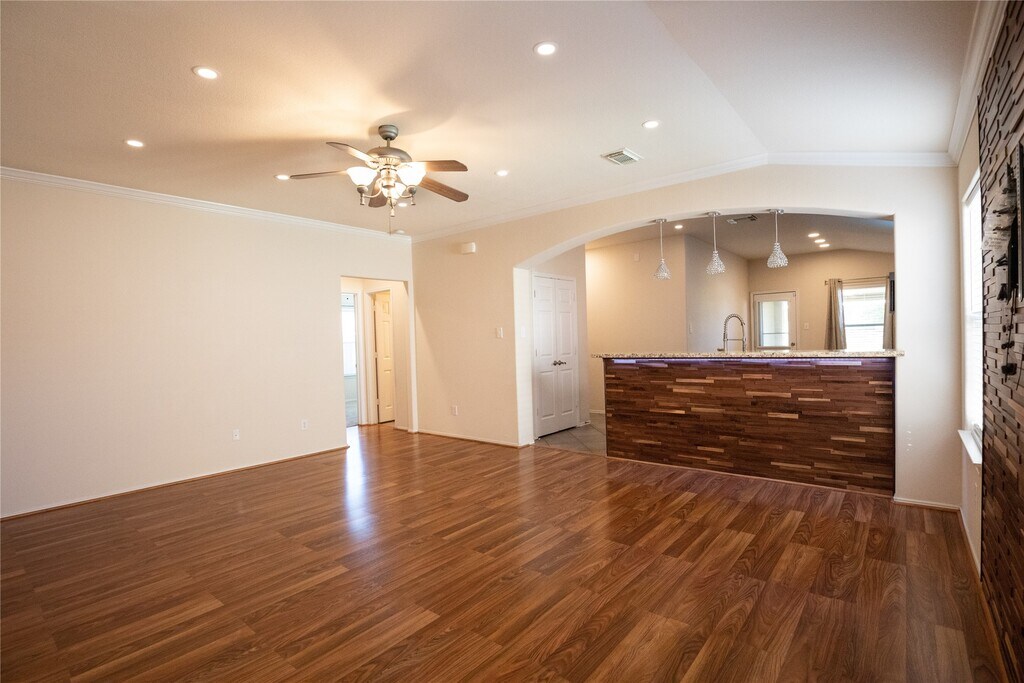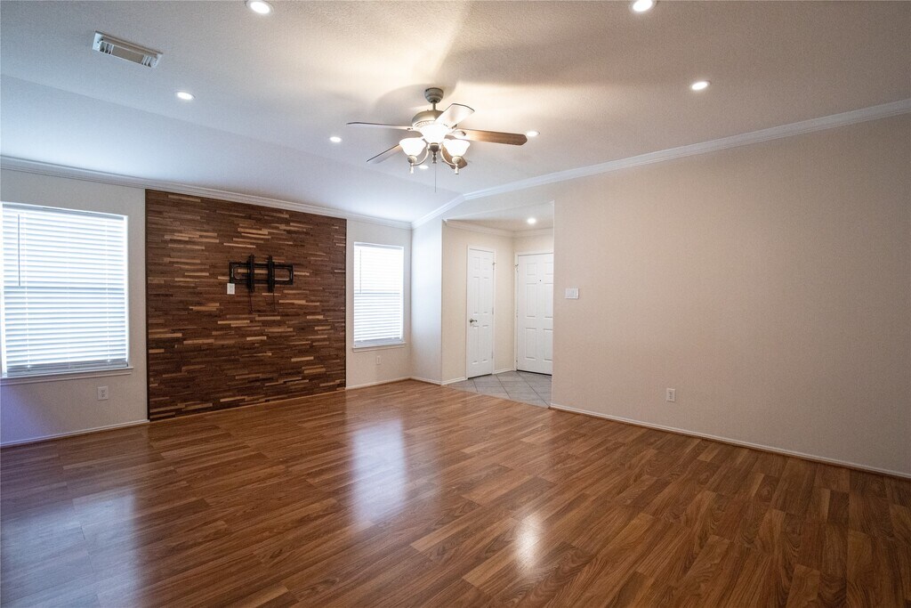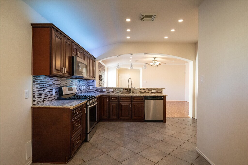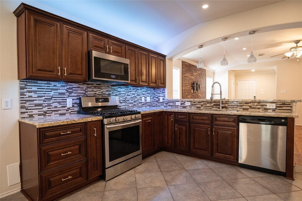 Need to move in a hurry? Welcome to The Enclave at Southern Trails with serene community lakes. Updated 3 bedroom,2 bath & 2 car garage home. Open floor plan. Updated laminate wood flooring in the family room with a beautiful stacked wood accent wall with flat screen TV mount and wall under the breakfast bar to the kitchen. Open to the family room the kitchen offers beautiful granite counters,glass tile accent backsplash,undermount cabinet lighting. undermount sink and updated faucets. Replaced the stainless steel appliances including the 5 burner gas stove. Recessed lighting throughout. Large primary suite with remodeled primary bath. Guest bathroom has also been updated. Large laundry room. Huge back covered patio which is perfect for entertaining or just sit back and relax after a busy day. Close to entertainment,shopping and restaurants. Conveniently located off 518 and 288 with easy access to downtown and the med center. Available immediately. MLS# 54205524