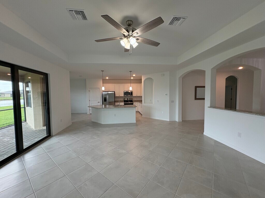 Amazing 4 bedrooms, 2 bathrooms, 3 car garage, tile flooring, open house plan house, screened lanai in Fort Myers. Gorgeous lake view! Amenities included: wheelchair accessible, central air, central heat, stainless steel appliances (washer, dryer, fridge, range, microwave, dishwasher and food disposal) and yard. Impact resistant windows included. Amenity center access which has a community pool, basketball, pickleball and tennis ball areas, playground and gym! Amazing bike trails and walk trails. No Utilities included. No pets allowed. Move in ready! $2,300/month rent. $2,300 security deposit required. $100 application fees to the HOA. Please submit the form on this page. This property is managed by a responsible landlord using Avail landlord software.