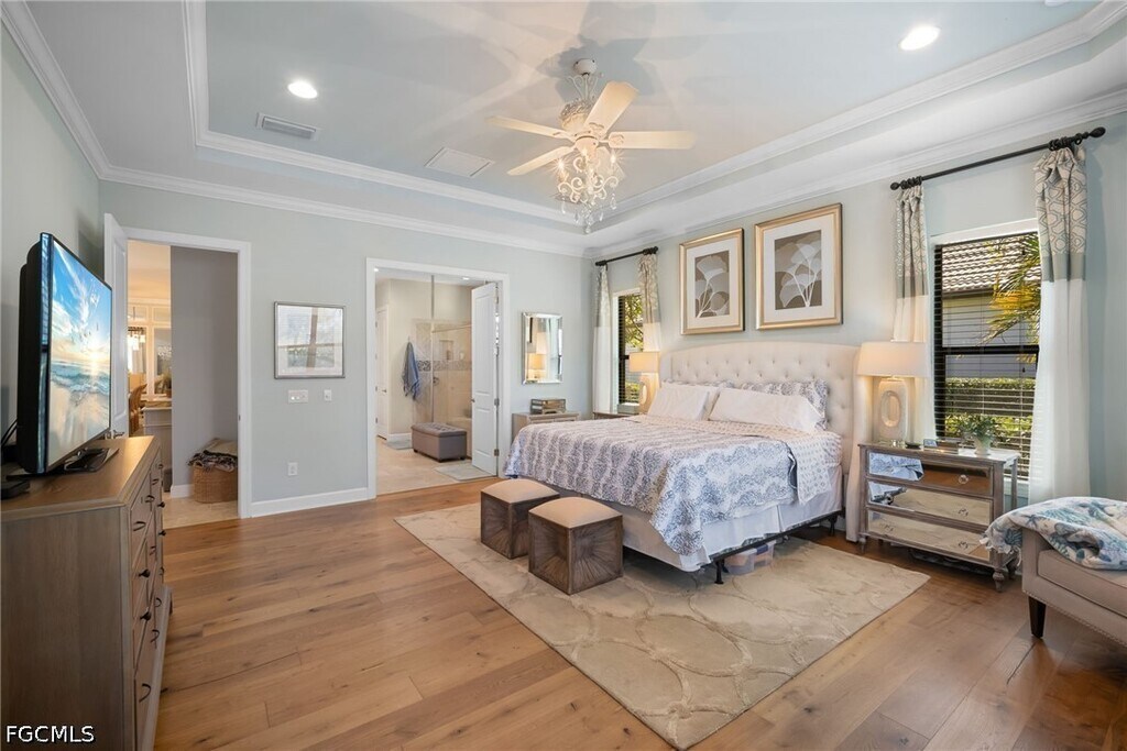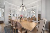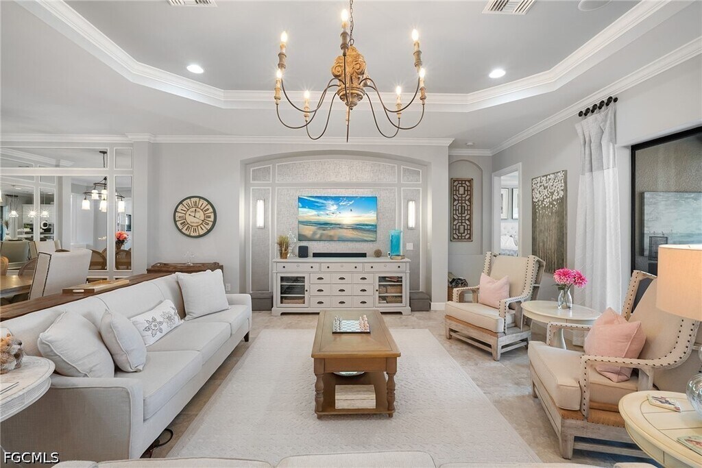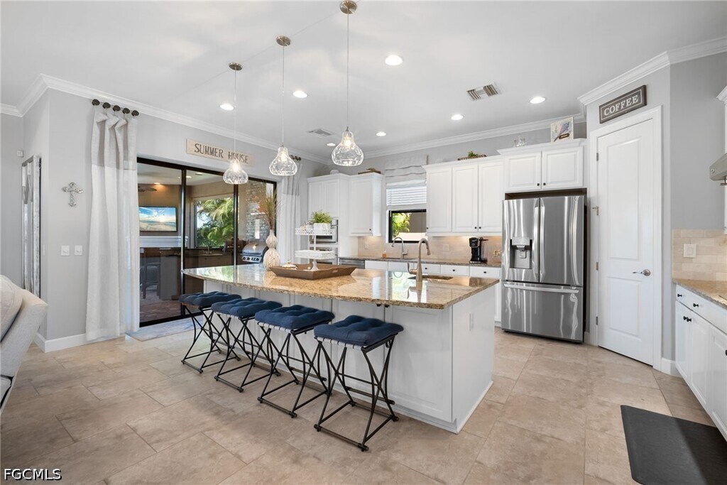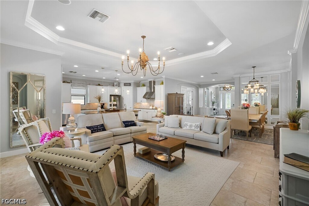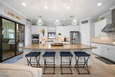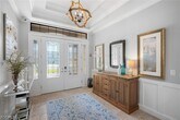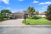 Welcome to one of the FINEST homes in the Country Club at River Hall! Perfectly located just minutes from the clubhouse,this Pallazio floor plan by Taylor Morrison offers 3 bedrooms plus a den,3 full bathrooms,and OVER 3,000 sqft of thoughtfully designed living space. With tile and luxury vinyl plank flooring throughout,this home is LOADED WITH UPGRADES and ready for its new owners! As you pull into the pavered driveway,you’ll immediately notice the mature landscaping,modern light fixtures,and CUSTOM garage door. Step through the double front doors with a transom window into a bright foyer accented by wainscoting and CROWN MOLDING that flows throughout the home. To your right,the guest suite offers privacy with its own EN-SUITE bath,featuring a walk-in shower and vanity,ideal for visitors. Across the hall,the den with double French doors,custom shelving,and a Murphy bed adds flexible living space for a home office or extra guests. Continue into the OPEN-CONCEPT main living area,where natural light fills the space. The dining area is accented by custom mirrors,while the living room showcases TRAY CEILINGS,and wide-plank luxury vinyl flooring. The kitchen is light and bright,featuring white shaker cabinets,a beautiful tile backsplash,granite countertops,stainless steel appliances with matching hood vent,oversized island,and a walk-in pantry! This space was designed for entertaining,and more importantly,effortless everyday living. The primary suite,tucked away for privacy,boasts an IMPRESSIVE SIZE. It includes tray ceilings,a large walk-in closet with custom shelving,and a luxurious double-entry shower with multiple shower heads,including a rainfall feature. Dual vanities,a makeup counter,and a private water closet complete the suite. Step through the sliding glass doors to the screened lanai,the true CENTERPIECE of this home’s design. Enjoy a heated pool and spa,OUTDOOR FIREPLACE,and a fully equipped OUTDOOR KITCHEN with propane grill,hood vent,and rock backsplash,perfect for year-round Florida living. ADDITIONAL HIGHLIGHTS include custom shelving in all closets,surround sound speakers throughout,a laundry room with a utility sink and overhead cabinets,and side-by-side washer and dryer,plus an OVERSIZED garage with overhead storage racks for convenience. Enjoy the 18-hole championship golf course designed by Davis Love III and experience resort-style living at its finest - all with low golf and HOA fees! The community offers a lakeside pool with a Tiki Bar and restaurant,a separate golf clubhouse with its own dining,a resort-style pool,full fitness center,pickleball and tennis courts,an on-site elementary school,and a brand-new fire station for added peace of mind. This home perfectly balances elegance,comfort,and functionality. Centrally located with easy access to Palm Beach and I-75,providing a straight shot to Downtown Fort Myers,RSW Airport,& SWFL dining and shopping.