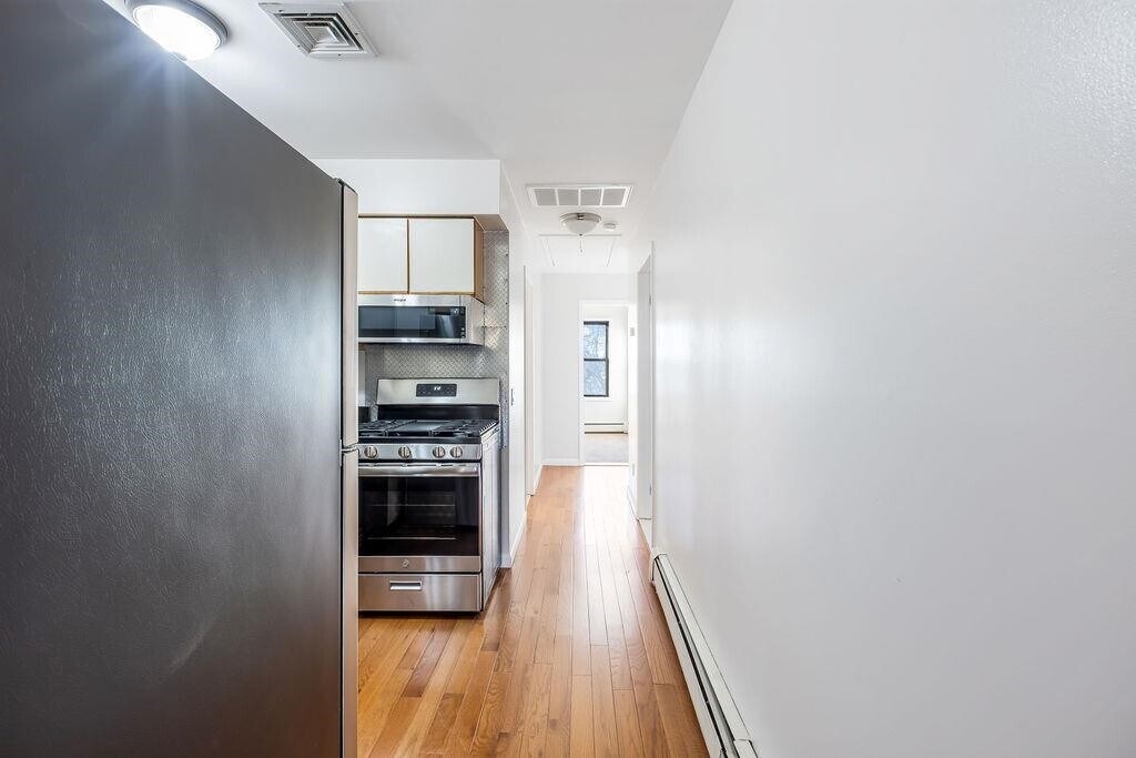 Welcome to Unit 1 at 3305 Liberty Avenue! This inviting three-bedroom, one-bathroom rental is ready to be your new home. As you step inside, you'll immediately be embraced by the abundance of natural light that illuminates every corner, creating a warm and welcoming atmosphere. The open living and dining area, with its beautiful hardwood floors and expansive floor-to-ceiling windows, serves as the heart of the home. This space is not only perfect for relaxation and entertainment but also features an extra nook, ideal for a work-from-home setup, enhancing its inviting appeal. The kitchen is a highlight, boasting brand-new appliances that make cooking a pleasure. Whether you're whipping up a quick meal or hosting a gathering, you'll appreciate the modern conveniences and spacious layout. Each of the three evenly sized bedrooms provides ample space for relaxation and personalization, allowing you to create your own private retreat. Each having its own closet plus an entry way closet for additional storage needs. The bathroom features a tub shower combo and additional vanity storage above and below the sink. Situated in the lively community of North Bergen, this unit offers easy access to local amenities, major highways, and public transportation, making commuting a breeze and connecting you to the vibrant life of New York City. Schedule a viewing today to see all that Unit 1 has to offer and envision yourself settling into this charming space.