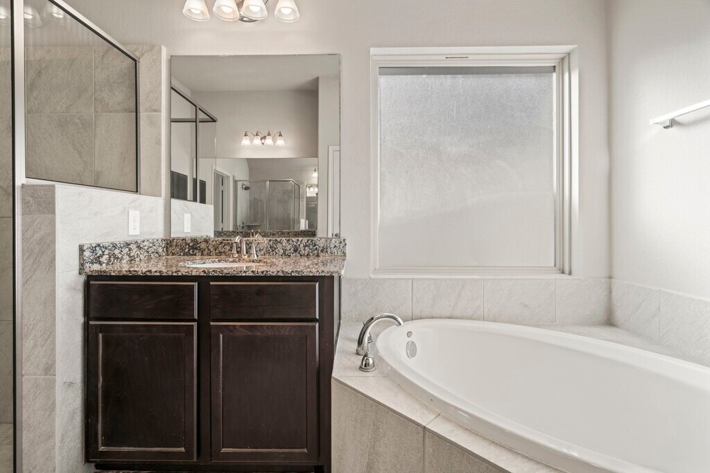Welcome to this beautiful home offering 4 bedrooms and 3 bathrooms with a spacious open floor plan and soaring high ceilings. The custom drapes and modern finishes add warmth and style to every room. The kitchen is equipped with a new microwave and dishwasher,while the living spaces flow seamlessly for both entertaining and everyday comfort. With no back neighbor,you’ll enjoy extra privacy and peaceful views right from your backyard. This lease includes added value and peace of mind with whole house water filtration,pre-wired camera system and a sprinkler system all included. The community enhances your lifestyle with beautiful lakeside walking paths,a refreshing pool,and family-friendly amenities. To top it off,you’ll love being surrounded by amazing neighbors on both sides who help make this location feel like home. This property is perfect for those seeking both comfort and convenience in a welcoming neighborhood. MLS# 97397669