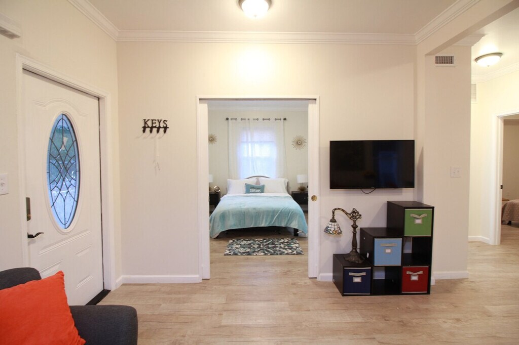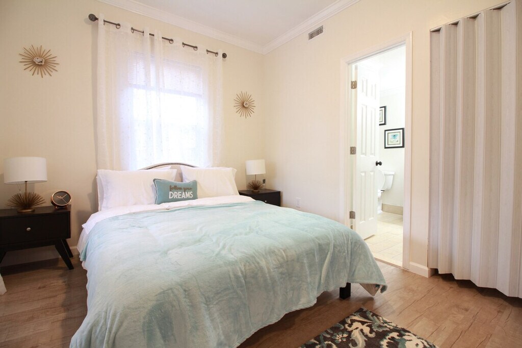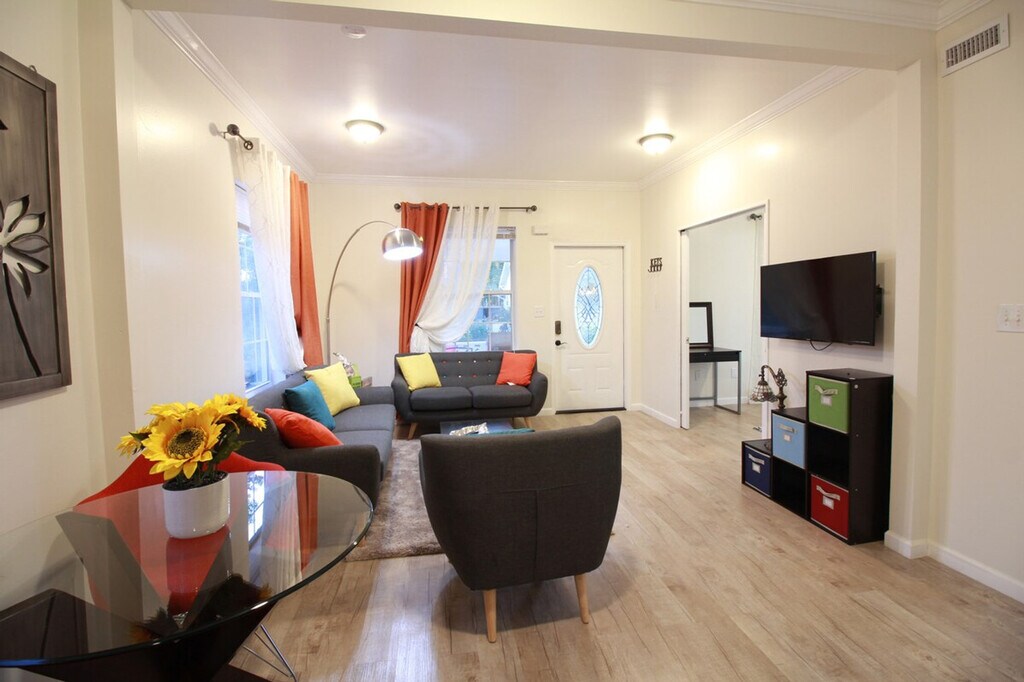 The advertised rate of $3,719/month is the lowest available price, based on a 30 day(s) stay with a move-in date of March 3, 2026. Rates vary depending on the duration of stay, season, and other parameters. For exact pricing and additional pricing components, please visit our website and enter your desired move-in and move-out dates. The rate is applicable when billed upfront; it can be higher if billed in multiple payments. Feel at home in this sun-filled, modern 2-bedroom apartment on the main level of a house. This fully renovated apartment features high ceilings and large windows. The apartment has an open-concept kitchen, living, and dining area. The fully equipped kitchen is perfect for preparing meals. The bathroom has two doors, one to the master bedroom and one to the hallway. The master bedroom features a queen-size bed. The second bedroom has a queen-size bed and a twin bed in the den. A shared laundry room is accessible from the kitchen backdoor. A pet fee applies. Contact before booking, as the pet fee is calculated based on the type of pet, the breed, the size of the pet, and the length of stay. The rate is around $25 per night per pet, up to $350 per month per pet. Free street parking is available. Enjoy a great outdoor front yard and porch. This apartment is within walking distance of grocery stores, restaurants, and cafes, and is 1.7 miles from the red, green, and yellow metro lines, with a direct metro line to National Airport. It's also close to Costco and a bike share. Trash day is Wednesday, and trash will be collected from the back alley. Registration Number: 07844-2020-0 [SI]