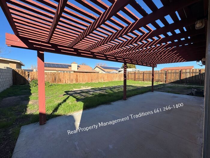 *** Please call us @ for information on availability, showings and applications processes *** Welcome to the "Great 4 + 2 in Rosamond!" This beautiful home, located in the charming town of Rosamond, CA, boasts four spacious bedrooms and two full bathrooms. The primary bedroom is a true retreat, featuring a walk-in closet and a slider that opens directly to the backyard. The heart of the home, the kitchen, is designed with an open concept that flows seamlessly into a large dining room, making it perfect for entertaining or simply enjoying everyday living. The kitchen also offers an abundance of storage space, ensuring all your culinary essentials are within easy reach. The living room is made even more inviting with a cozy fireplace, perfect for those cooler evenings. Outside, a large covered patio provides a great space for outdoor dining or relaxation. The home also includes a two-car garage, offering additional storage options. Experience the perfect blend of comfort and convenience in this Rosamond gem! Contact us to schedule a showing.