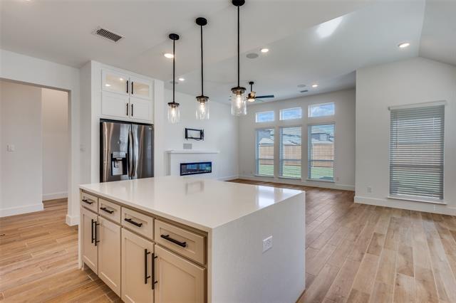 PROSPER ISD!! A stunning single family one story house with 4 bedrooms, 3 bathrooms with over $50K worth of upgrades! Enjoy a beautiful kitchen with quartz countertops, waterfall island two-tone cabinets, Kitchen-aid Gallery appliances and a gas cooktop. With 3 FULL bathrooms, and a shower and tub in the primary bathroom, comfort is not something you'll sacrifice in this house. In addition to the primary bedroom, one of the secondary bedrooms has direct access to a bathroom allowing it to be the perfect place for guests, older kiddos or the in-laws! Enjoy a surround sound speaker system in the living room, AND pre-wired for out door speakers in the covered patio space! This stunning luxury home is everything you need whether you're moving from out of town or need to upgrade your rental life, this house is perfect. Located in a new community minutes from HWY 380 and DNT for easy accessibility