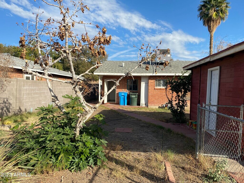 Lovely historical 2 Bedroom,1 Bath Redbrick Duplex. This unit is on the right side of the Duplex when you facing the property. Spacious great room,tile floor through out. Large desert landscaping backyard for easy maintenance. Rear Entry one covered parking. Water and Trash are included in rent. Close to Phoenix College,dinning,shopping. Easy access to freeway. Agent/Renter verify all information.