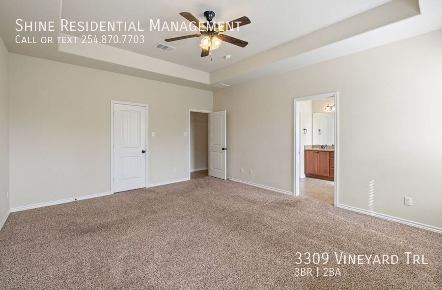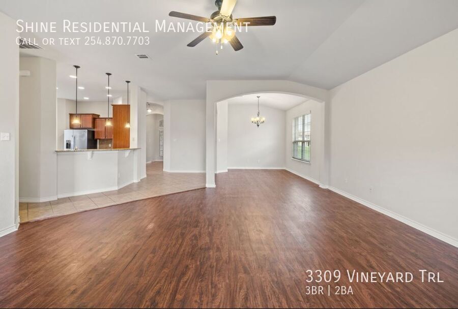 There is currently a 3 Bed 2 Bath Home for rent with 2,199 sq ft listed at 3309 Vineyard Trail. It is Available April 7, 2026.