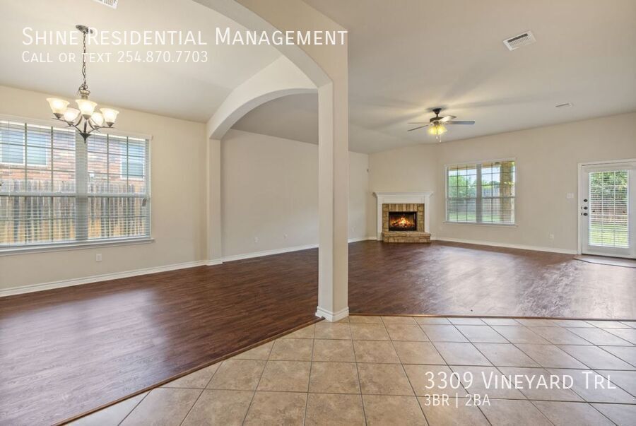Welcome to your dream home in Harker Heights, TX. This stunning 3-bedroom, 2-bathroom house is a perfect blend of style and comfort. The home features a cozy fireplace, a well-equipped pantry, and ceiling fans for those warm Texas days. The vaulted ceilings add a touch of elegance, while the window coverings and walk-in closets provide practicality. The kitchen is a chef's dream with a stainless microwave vent hood, dishwasher, side by side refrigerator with water and ice in the door, and wall-mounted dual ovens. The island and countertops are adorned with beautiful granite, and the recessed lighting creates a warm ambiance. The flooring is a tasteful mix of wood, carpet, and tile. The master bathroom is a sanctuary with a garden tub, separate shower, and a dual vanity with a granite countertop. The house also boasts a central heat/air system, a 2-car garage with an opener, and a wood privacy fenced yard. The grand entry, arched hallway headers, and covered front and back porches add to the home's charm. This house is not just a place to live, it's a lifestyle. 2 Car Garage Parking With Opener Arched Hallway Headers Central Heat/Air Covered Back Porch Covered Front Porch Dual Vanity In Master Bath With Granite Counter Top Garden Tub/Seperate Shower In Master Bathroom Glass Flat Cooktop Grand Entry Granite Counter Tops In Kitchen Island In Kitchen With Granite Counter Top Linen Closets Recessed Lighting Stainless Dishwasher Stainless Microwave Venthood Stainless Side By Side Refrigerator With Water And Ice In Door Stainless Wall Mounted Dual Ovens Vaulted Ceilings Walk In Closets Washer/Dryer Connection Window Covering Wood Privacy Fenced Yard Wood/Carpet/Tile Flooring