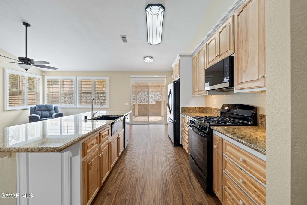 Immaculate single-story home for lease in the highly desirable Rancho Vista community! This spacious 4 bedroom, 2 bathroom home offers approximately 1,960 sq ft of open-concept living with vaulted ceilings and a large great room layout. Recently refreshed with new flooring throughout, including brand-new carpet and tile in key living areas, along with updated showers and modern fixtures, this home is truly move-in ready. The upgraded kitchen features granite countertops, soft-close cabinetry, breakfast bar seating, and comes fully equipped with refrigerator, stove, microwave, dishwasher, washer, and dryer for tenant convenience. Plantation shutters, ceiling fans, and an interior laundry room add comfort and functionality throughout. Enjoy a private low-maintenance backyard with a large covered patio, ideal for relaxing or entertaining. Prime location just minutes from Marie Kerr Park, Antelope Valley Mall, Highland High School, shopping, dining, and easy freeway access. Excellent commuter location for Plant 42, Lockheed Martin, Northrop Grumman, and other nearby aerospace and defense employers. -Move-in ready and available now--don't miss the opportunity to lease this exceptional single-story home in one of West Palmdale's most desirable neighborhoods. -*$100/month rent discount available for Active Military, Veterans, DoD Civilians/Contractors, Civil Servants, and First Responders.**Navy Veteran owned property. *-All applicants welcome and subject to standard screening criteria.-Pets may be considered subject to owner approval and additional.- Tenant responsible for all utilities. -1-year lease minimum.-*Apply Here! ->