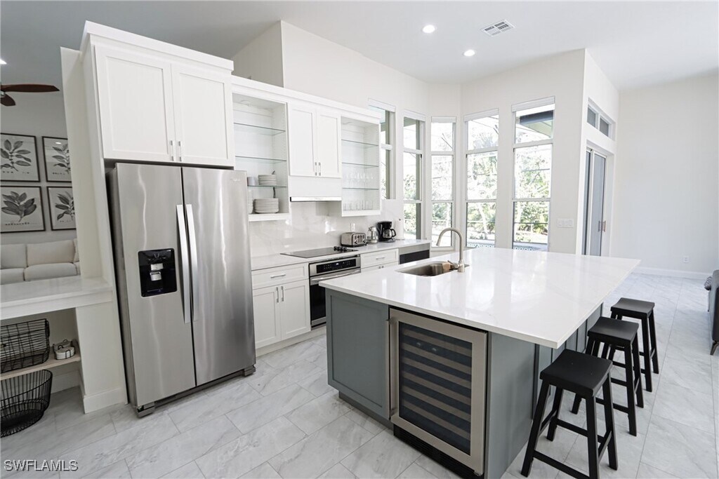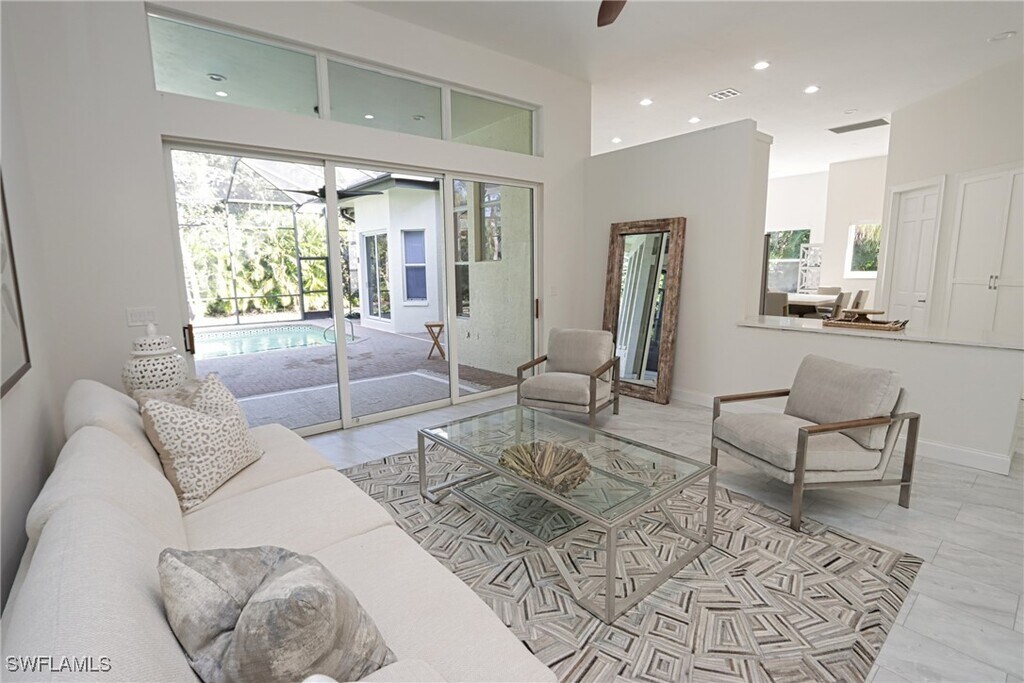 Magnificent 4 bedroom plus den home with pool. This newly renovated and tastefully decorated single family home in award winning community of Bonita Bay. Great room floor plan with white shaker cabinets,large island with quartz countertops,opens to dining and living area. Master suite offers a large king bed,walk-in closet,spacious walk-in shower and stand alone tub. Two of the guest suites offer a queen bed and the 3rd with 2 twin beds. Den has a sleeper sofa for any guests. Beautiful pool area and seating area to enjoy with private preserve and landscape views. Take the shuttle to the private park on Bonita Beach for a day of sun and surf. Three waterfront recreational areas include Spring Creek,which features canoe and kayak launches and picnic area. Riverwalk Park offers lighted tennis courts,fishing piers,and children's playground. Estero Park offers a pavilion,picnic area,butterfly park and boardwalk to Estero Bay. Beach Club can be accessed by tram provided by Bonita Bay Beach Club provides lounge chairs,restroom/showers,charcoal grills and gazebo with picnic tables.