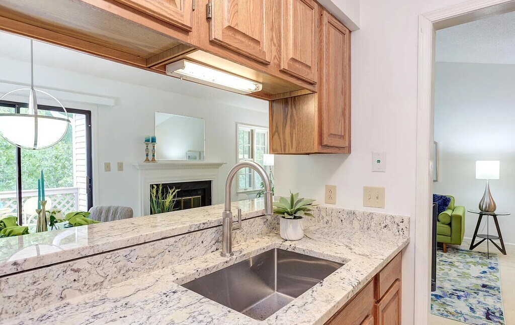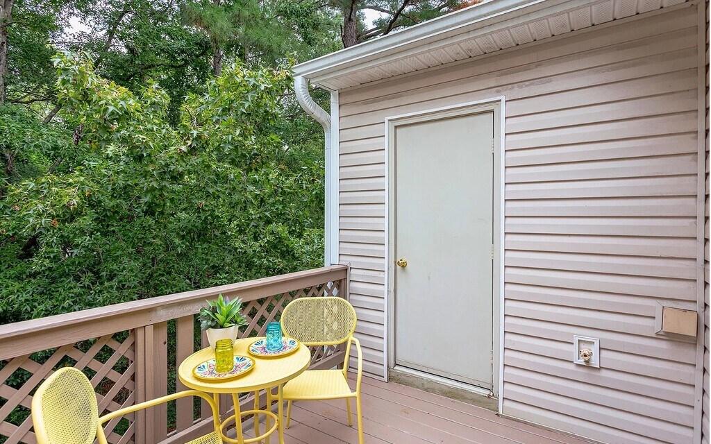 This delightful second story 1BR/1BA condo is designed to please. Open concept living coupled with towering ceilings transform this diminutive little gem into a space which lives large! Galley kitchen which peeks into the comfortable dining area creates a perfect space for entertaining and the adjacent balcony awaits that morning cup of joe! The spacious bedroom with ample storage streams loads of natural light - so warm and inviting! Granite countertops in kitchen along with new sink and faucet are among recent updates. Great location with easy access to shopping and restaurants. Close to 54 and I-40. Don't let this one get away!