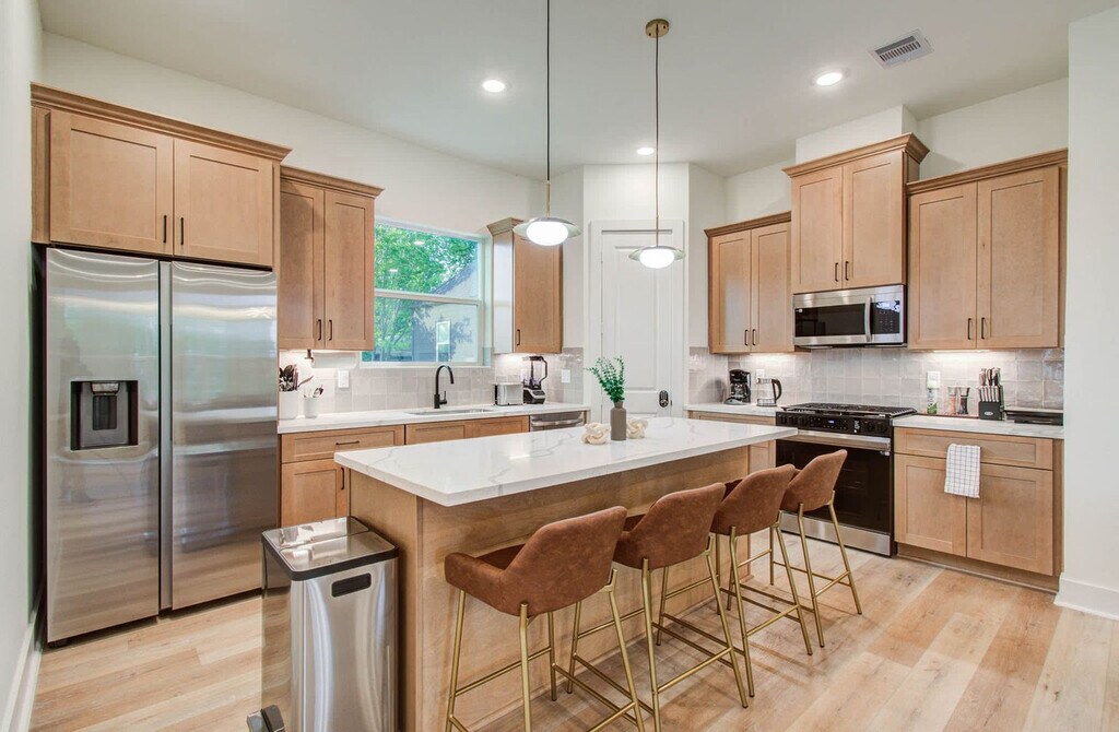 Welcome to your home away from home in this chic, stylish, three-story townhome in Southeast Houston. This hidden gem is centrally located in the Inner Loop, just minutes from Houston’s prime attractions. This home features a fully equipped, modern kitchen with stainless steel appliances and a functional kitchen island with stool seating. The dining room offers a restaurant-like environment with a dinner table and seating for 8+. The open-concept living room is designed for easy socializing with comfortable couches and sofas, a wall-mounted HDTV, and high-speed Wi-Fi. A laundry room with a washer and dryer is available for your use, and a small backyard is also available for your enjoyment. Free parking is available in the garage. House-trained pets are welcome with a non-refundable pet fee of $150 per pet, with a maximum of 2 pets up to 25lb per stay. An additional nightly rate will be applied for more than six guests. Houston is known for its tasty Tex-Mex and contributions to space and science. Nearby attractions include The Houston Museum of Natural Science, Houston Zoo, and Minute Maid Park. Exciting neighborhoods such as Midtown, Washington Avenue, and Montrose offer great restaurants and lively bars. Smoking of any type is not allowed, and violations are subject to a $450 fine plus the cost to clean, deodorize, and repair damages. Check-in is at 4pm and check-out is at 10am. Only registered guests are allowed on the property. A noise alert device is installed to comply with local noise ordinances and prevent unauthorized parties; this device does not record or store sound data. Full disclosure of the number of people on the property at any time is required, with security camera verification to comply with local laws. Registration Number: STR-2025-000711 [SI]