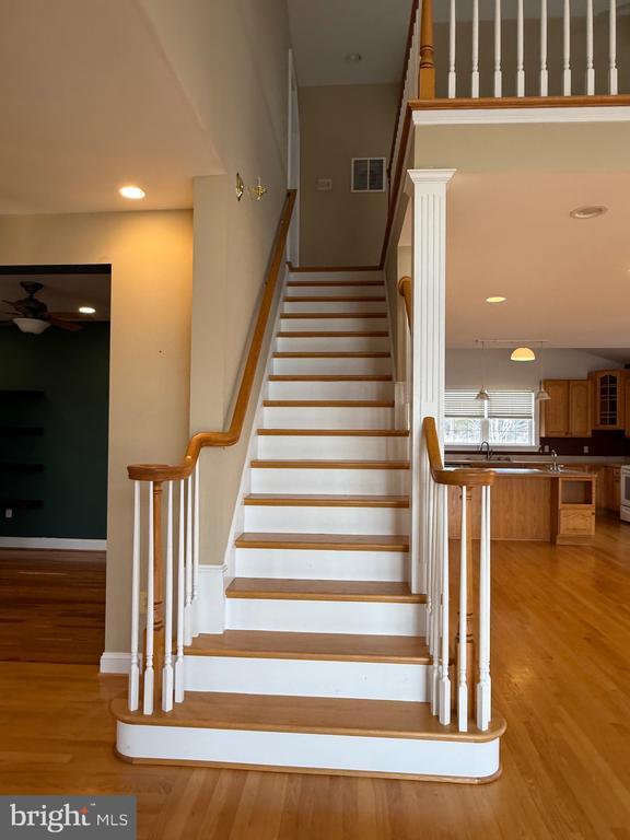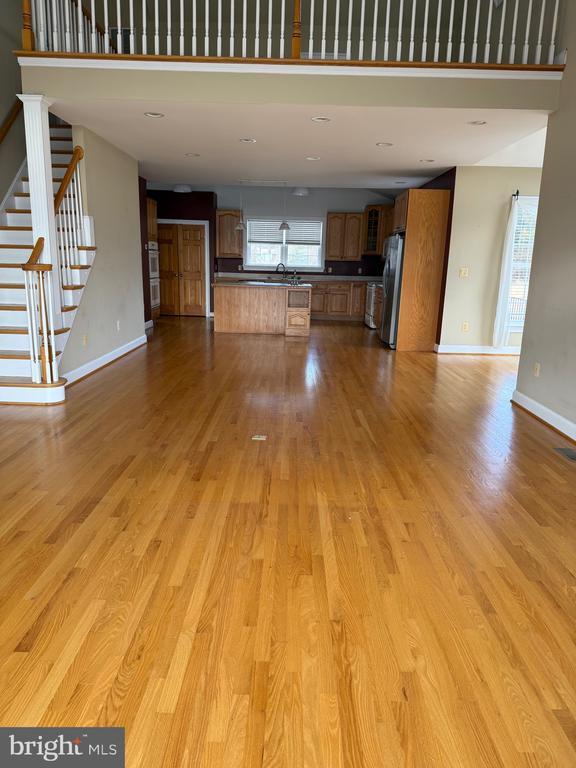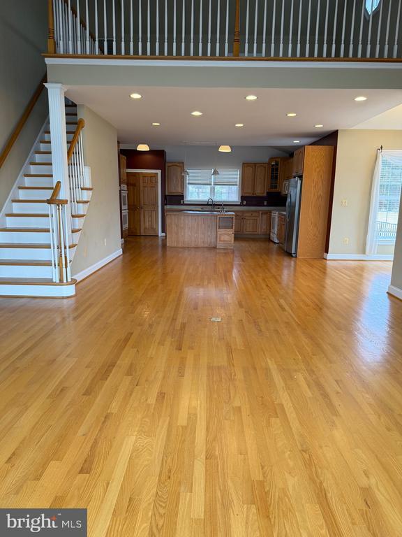 Beautiful open floor plan home. This home is divided into 3 rentals. This rental portion does not include the basement. Enter front door with an open study to the left is the primary bedroom, full bath and half bath in hall. To the right is the staircase to the loft and upper bedroom and bath as well as the large living area. Parking is in the front and rear where there is a shared patio. Rental does not include the garage.