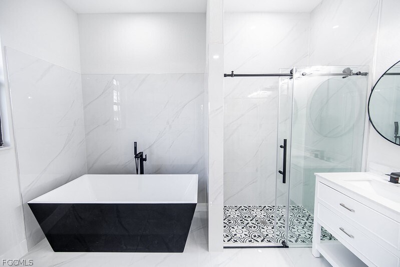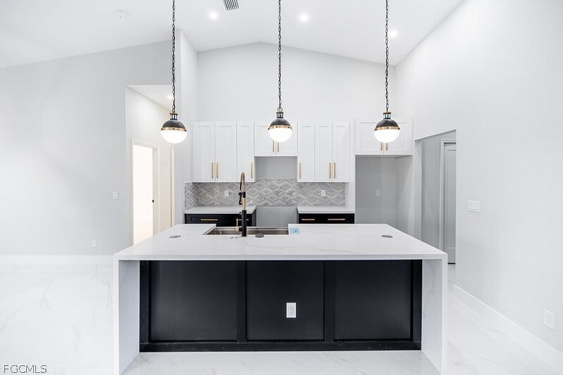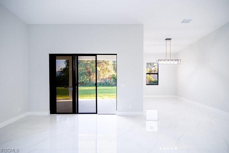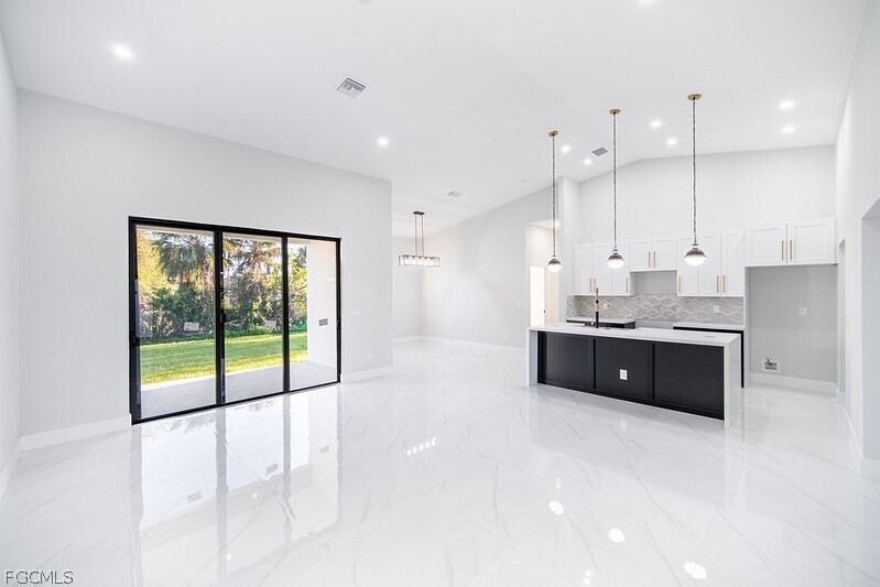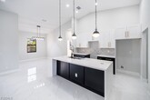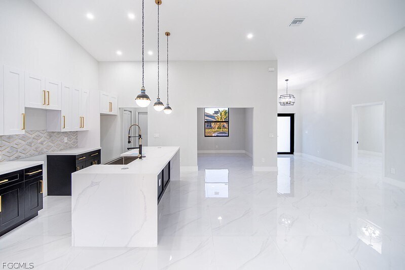Luxury,security,and modern design—all in one perfect,never-lived-in home! This stunning 2025-built new construction offers 1,723 sq. ft. of living space with custom touches you won’t find anywhere else. Designed with a sleek white,black,and gold color scheme,it features porcelain floors,impact-resistant doors & windows,a tray ceiling in the master bedroom,and soaring cathedral ceilings in the living room. The gourmet kitchen boasts a farmhouse sink,top-of-the-line unique fixtures,soft-close cabinets,and a large island with two pop-up outlets. The primary bath is a retreat with a walk-in shower,sit-in bathtub,and his-and-hers sinks,plus a spacious walk-in closet. Enjoy the huge private lanai and the convenience of a washer & dryer and an updated ADT Security System. Come check it out before it’s too late!
