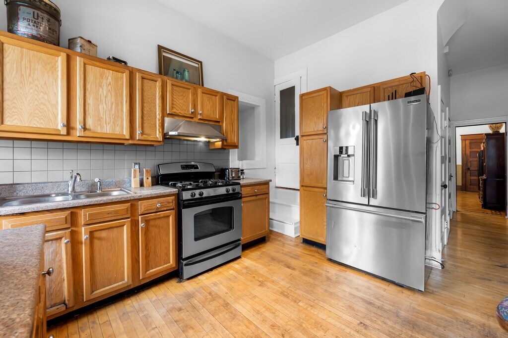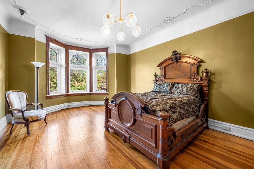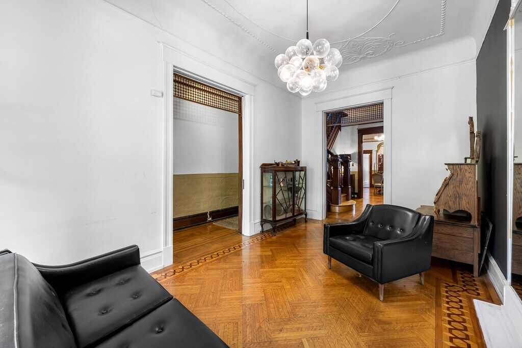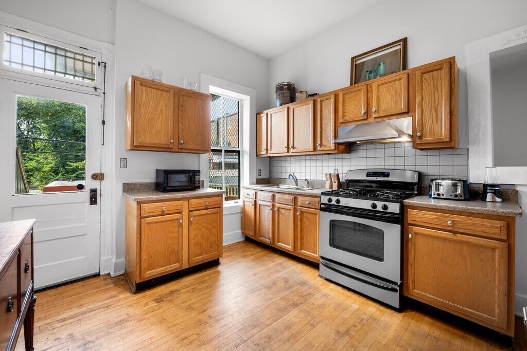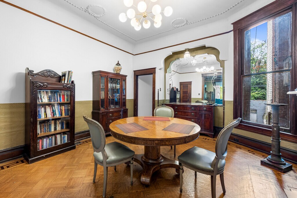 Rare opportunity to live next to Druid Hill Park and face the Rawlings Conservatory and Maryland Zoo!! Nestled in the charming Auchentoroly Terrace Historic District, this exquisite Renaissance Revival townhouse, built in 1907 and thoughtfully renovated in 2022, offers a unique blend of historic elegance and modern luxury. With six spacious bedrooms and two and a half bathrooms, this residence is designed for both comfort and style, making it the perfect sanctuary for those seeking an exclusive lifestyle. Step inside to discover a warm and inviting interior adorned with plaster moldings and rich wood floors that exude character and sophistication. The traditional floor plan seamlessly connects the dining area to a kitchen that boasts upgraded countertops and ample table space, ideal for both casual meals and entertaining guests. The property is equipped with essential appliances, including a refrigerator, and stove ensuring convenience and ease in daily living. The laundry area, complete with a washer and dryer, adds to the home's functionality, making chores a breeze. Enjoy the outdoors from your private deck or porch, perfect for morning coffee or evening gatherings. The property also includes a garage for additional storage, enhancing the practicality of this lovely home. Parking is available on the street, and the home is conveniently located near various amenities, making it easy to enjoy the vibrant community surrounding you. This residence is available for lease starting November 1, 2025, with flexible lease terms ranging from 12 to 24 months. The property is partly furnished, allowing you to personalize your space while enjoying the luxury of a well-appointed home. Experience the charm of historic living combined with modern comforts in this stunning townhouse, where every detail has been carefully curated to create a warm and inviting atmosphere. Embrace the exclusive lifestyle that awaits you in this remarkable property.