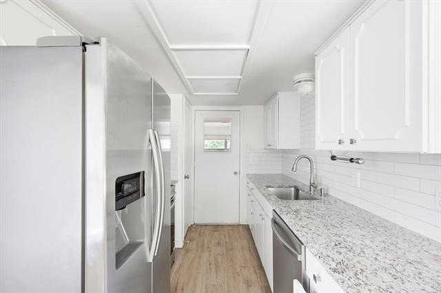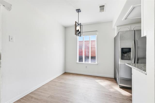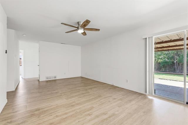 Welcome to this charming mid-century modern single-story home located in the heart of Irving, TX. Nestled on a generous 7,971 sq ft lot, this updated residence offers a blend of style, function, and comfort — ideal for families or professionals seeking space and privacy. Features & Updates: 4 spacious bedrooms and 2 full baths across approx. 1,556 sq ft of thoughtfully designed living space. Modern kitchen with granite countertops, new sink, faucet, oven, dishwasher, and vent hood — perfect for daily meals or entertaining. Updated bathrooms featuring new vanities, mirrors, and lighting. Luxury vinyl plank flooring throughout the home for a sleek, durable, and easy-to-maintain finish. Recently replaced roof and garage door opener for added peace of mind. No shared walls — enjoy privacy and quiet in a detached, single-family setup.