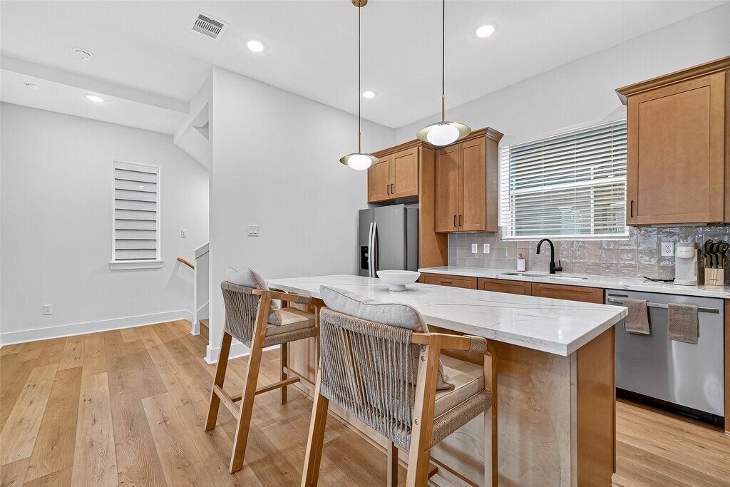 Explore the stunning 3-story homes at Daphne in Peerless Park! With 3 spacious bedrooms and 3.5 baths,these homes are just minutes from the Medical Center . Enjoy an open-concept layout featuring luxury vinyl plank flooring and modern exteriors. The chef-inspired kitchen includes Quartz countertops,a vibrant Zellige mosaic backsplash,and stainless-steel appliances. The primary suite offers a spa-like ensuite and a spacious walk-in closet. Each secondary bedroom has its own ensuite bath and ample closet space. Located near the new 52-acre Hines Development and TMC3 medical center,this community is rapidly growing,with no HOA fees! MLS# 5541396