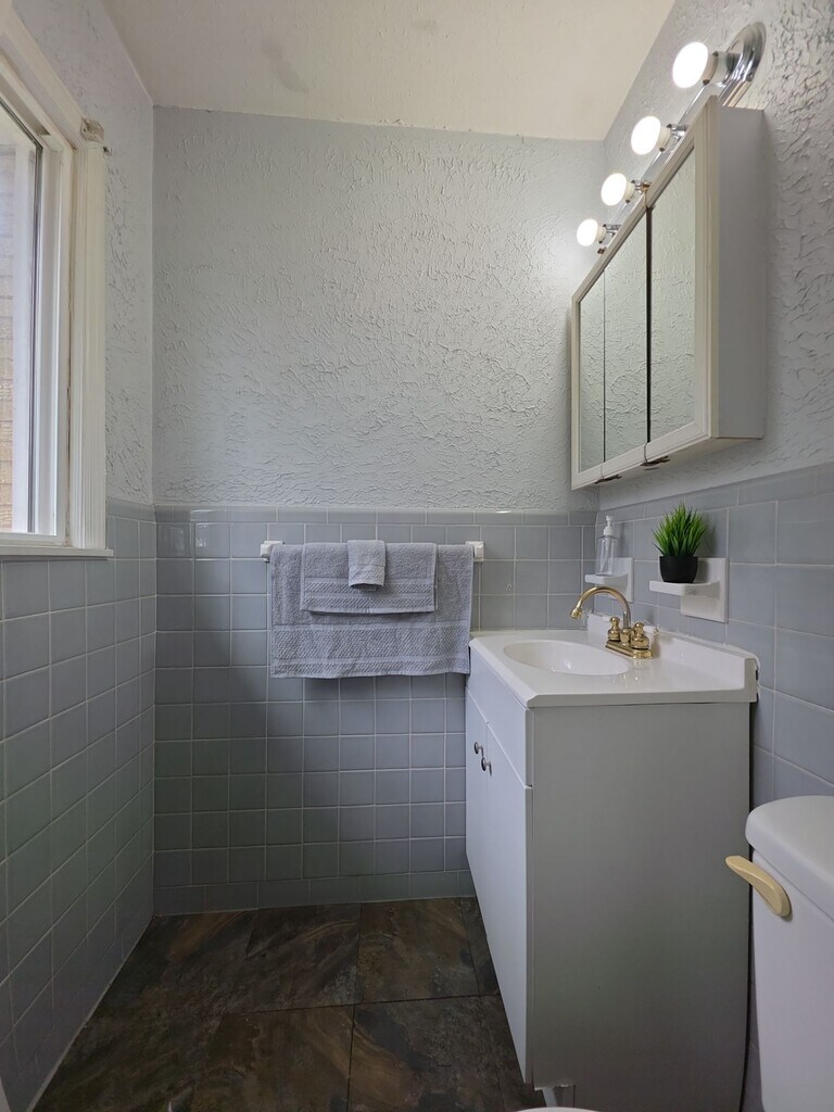 Charming three-bedroom home with a flexible bonus room that can be used as a second living space, office, or playroom. The main living room features a statement mirrored wall that adds character and brightness to the space. The main bathroom has been updated and there is a separate laundry area for added convenience. The primary bedroom offers a private half bathroom, and the layout provides comfortable living with plenty of versatile space throughout.