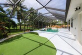 Welcome Home! Enjoy the privacy of the 4 + Den split bedrooms with closets and blinds on every window, 3 bathrooms, living room with a custom made electric burning fireplace, plus a pool off the patio situated on the preserve providing lush surroundings, ensuring privacy and tranquility. Step inside to the open floor plan that seamlessly connects the living, dining and kitchen areas. The Den is perfect for a home office or library. Upgrades include vinyl flooring throughout, freshly painted inside, fully cleaned ducts, new pool pump. Outside there's a large gated backyard, expensive lanai with tongue-n-groove wood ceiling, where an inviting private screened pool beckons you for a refreshing swim. 2.5 car garage provides plenty of storage and hobby space.