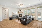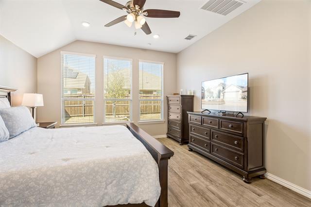 Beautiful one-story custom home featuring an open concept layout and gorgeous wood-look tile throughout the entire home—no carpet anywhere. High ceilings and tray ceiling details create an open, airy feel, complemented by recessed lighting and abundant natural light. The spacious kitchen is the heart of the home, showcasing a large center island, four-burner gas cooktop, upgraded stainless steel appliances, a walk-in pantry, and extensive cabinet storage—perfect for both everyday living and entertaining. The dining area includes a charming built-in bench seat, while the living room features a cozy fireplace and surround sound system. This well-designed floor plan offers 4 bedrooms, 3 full baths, plus a dedicated home office with French doors. The private primary suite includes dual vanities, a relaxing soaker tub, separate shower, and a large walk-in closet. Spacious living room includes a corner fireplace. Additional highlights include ceiling fans in every bedroom, a covered patio for outdoor living, two hot water heaters, and a whole-home water filtration system which conveys with the house. The garage is equally impressive with an epoxy-coated floor and overhead storage racks, providing both durability and extra storage space. This thoughtfully designed home blends comfort, quality, and functionality in a beautiful single-story layout. Be sure to check out the Zillow 3-D Virtual Tour (virtual tour link). See Transaction Desk for Lease Process & Eligibility Requirements. Home is available furnished or unfurnished.
