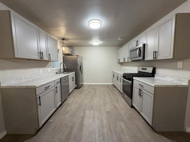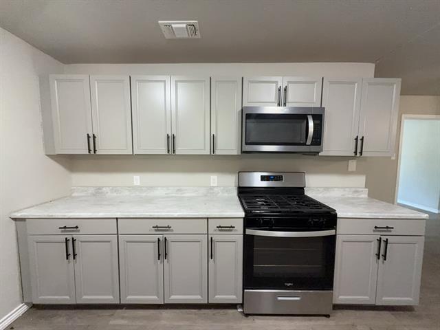 Discover comfort and elegance in this 3-bedroom, 2-bathroom Mesquite home with 1,655 sq ft of modern living space. Located in a desirable neighborhood, it features a 2-car garage with openers, a covered front porch, and a formal living room. The exterior showcases grey and pewter green paint, while the interior offers repose grey walls, white woodwork, and premium vinyl plank flooring. The gourmet kitchen includes grey cabinets, stainless steel gas range, dishwasher, microwave, and a pull-down faucet with sprayer. A spacious family room with a brick fireplace and ceiling fans, a dedicated home office, and a primary suite with a tiled stand-in shower, vanity, and toilet complete the layout. Two additional bedrooms, a hallway bathroom, and a fenced backyard provide comfort and functionality for everyday living. SUBMIT A RENTAL APPLICATION and READ RENTAL CRITERIA: Please see private remarks for more info about submitting a rental application and to read our rental criteria.