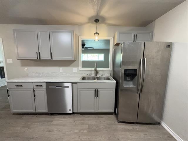 Mohamed SultharDiscover comfort and elegance in this 3-bedroom, 2-bathroom Mesquite home with 1,655 sq ft of modern living space. Located in a desirable neighborhood, it features a 2-car garage with openers, a covered front porch, and a formal living room. The exterior showcases grey and pewter green paint, while the interior offers repose grey walls, white woodwork, and premium vinyl plank flooring. The gourmet kitchen includes grey cabinets, stainless steel gas range, dishwasher, microwave, and a pull-down faucet with sprayer. A spacious family room with a brick fireplace and ceiling fans, a dedicated home office, and a primary suite with a tiled stand-in shower, vanity, and toilet complete the layout. Two additional bedrooms, a hallway bathroom, and a fenced backyard provide comfort and functionality for everyday living.SUBMIT A RENTAL APPLICATION and READ RENTAL CRITERIA: Please see private remarks for more info about submitting a rental application and to read our rental criteria.
