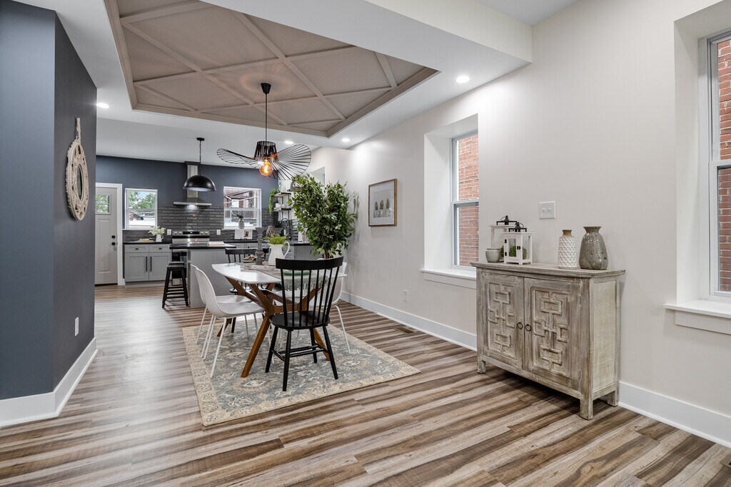 Welcome to this beautifully renovated gem in Tower Grove East. Boasting 3 beds and 2.5 baths, this 2-story home blends classic charm with modern luxury. The open-concept main level offers a comfortable living area and a dining space adorned with a tray ceiling and retro chandelier. The sleek kitchen shines with stainless-steel appliances and butcher block countertops. Upstairs, the master bedroom features an ensuite bathroom and a private balcony. Two additional bedrooms and a full hallway bath provide ample space. Step outside to your fenced backyard, perfect for relaxation and play. The neighborhood is quiet, boasts a community garden and orchard, and is walking distance from restaurants, shops and public transportation. Amazing 3 bedroom, 2.5 bathroom townhouse in St. Louis. Amenities included: balcony, central air, central heat, deck, dishwasher, hardwood floors, stainless steel appliance, updated kitchen, updated bathroom, storage, washer dryer, and yard.