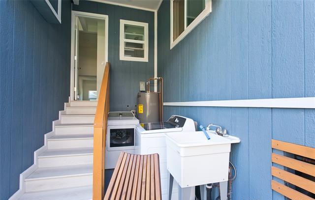 Escape the hustle and bustle and enjoy living in paradise in this like-new 2 bedroom, 1 bathroom home in a prime neighborhood of Kapahulu. The home was just fully renovated in 2025 with tasteful, modern upgrades. Water, sewer, electricity, and yard work is INCLUDED in rent. This is an upstairs unit with private entry. Home is shared with front neighbors in main home. Common areas include full size washer and dryer, a yard with lots of beautiful plants and room to relax and get some fresh island air. Ample storage also available. Two parking stalls (tandem) in the carport area. Wonderful location, minutes away from Waikiki and Diamond Head, University of Hawaii, and so much more! 2 bedroom, 1 bathroom, 2 covered parking stalls - tandem