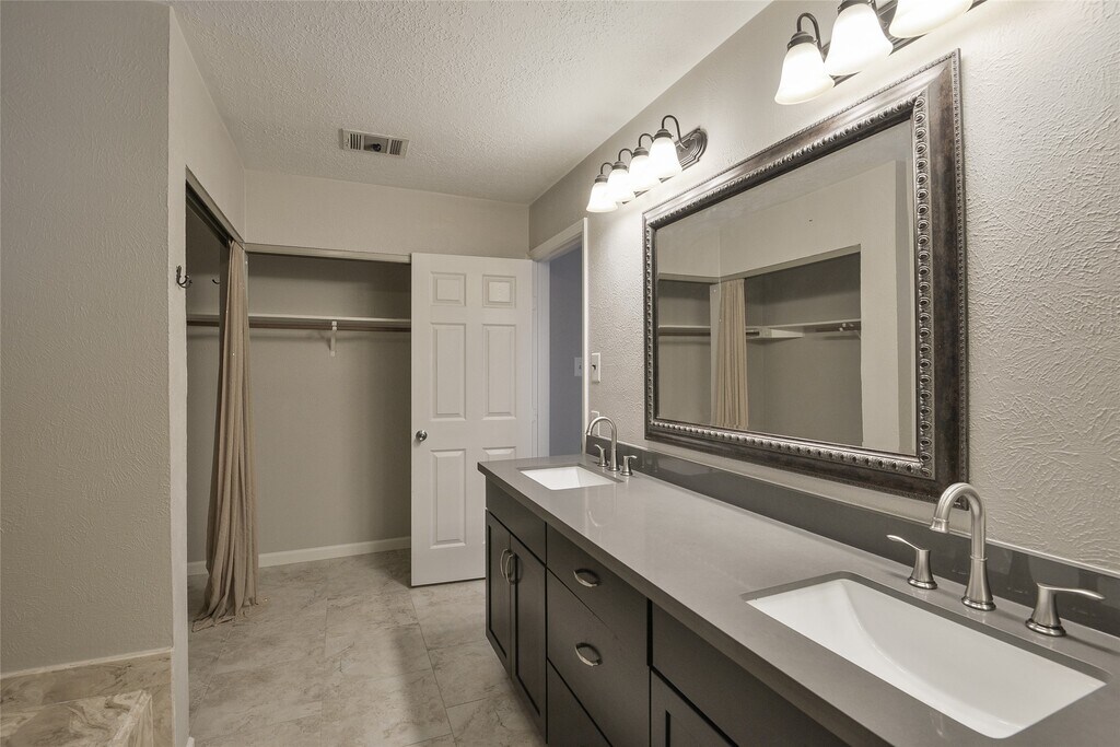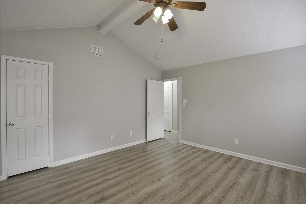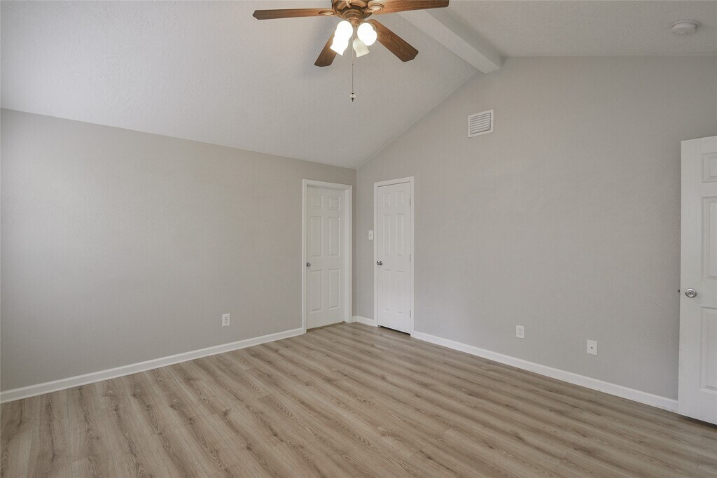 Beautifully upgraded one story home featuring 4 bedrooms,tile and hand-scraped wood laminate floors. (no carpet) Beautifully remodeled kitchen with custom cabinets in a dark espresso color,Wilsonart counters and sleek black appliances. Spacious primary suite with vaulted ceiling and gorgeous wood laminate floor and upgraded ensuite bath with dual sinks,garden tub and separate shower,framed mirrors,and two walk-in closets! Backyard is private and inviting with extended patio for entertaining and the Storage shed. Zoned to desirable schools and perfectly located within walking distance of parks,greenbelt trails and schools. Close to 59 with easy access to IAH Airport and Downtown. No Short Terms Rentals. MLS# 8237491