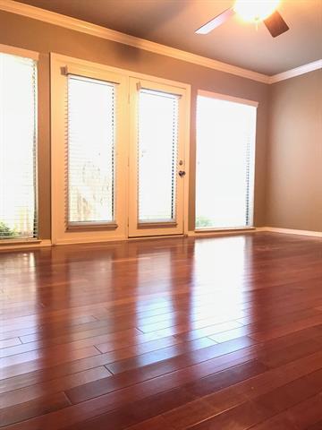 This charming 2-bedroom, 2-bath home with a 2-car garage is a must-see in Monticello. Located just blocks from West 7th, it offers the perfect blend of comfort and convenience. The spacious living area features a cozy wood-burning fireplace, while the kitchen showcases granite countertops, stainless steel appliances, and flows seamlessly into a generous breakfast area. Wood and tile flooring run throughout the main living spaces, and both bedrooms feature French doors that open directly to a peaceful private courtyard. Additional highlights include elegant crown molding, plantation shutters, and included lawn care, making this home as low-maintenance as it is inviting.