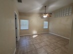 This beautiful home is ready for its next occupants! Featuring tile flooring throughout the main living areas, the open-concept living room and kitchen feel bright and spacious with soaring ceilings. A separate dining area offers the perfect space for gatherings. The kitchen is equipped with stainless steel appliances and flows conveniently into a large laundry room. Enjoy the versatility of the expansive patio, complete with an A/C duct (not included in the square footage), making it ideal for a home office, bonus room, or additional living space. The primary suite features a walk-in closet and an updated en-suite bathroom with a beautifully tiled walk-in shower. Step outside to a spacious, fully fenced backyard—perfect for relaxing or entertaining. Application fee is $65 per adult (non-refundable). All occupants 18 years or older must apply. A $75 tenant processing fee is due at move-in in addition to rent and security deposit(s). Applicants must have a minimum credit score of 600, no prior evictions, and a monthly income of at least three times the rent. Credit and background checks are required.