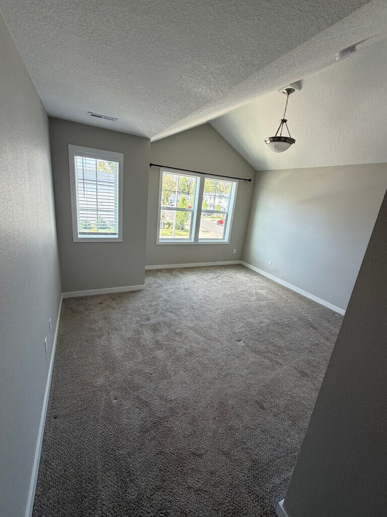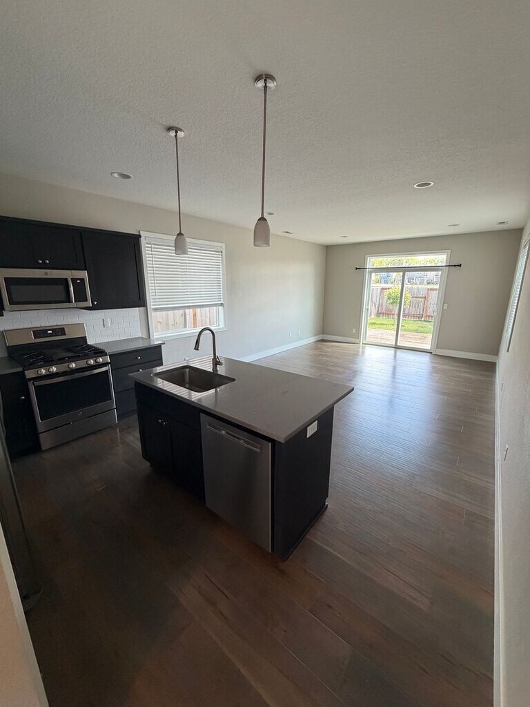This newer 1,558sf home features 3 bedroom, 2.5 bathrooms and an attached single car garage. LVP flooring downstairs and carpet upstairs. Gas hot water heater. The kitchen features beautiful quartz counters and a tile backsplash. Stainless steel appliances include the refrigerator, gas range/oven, dishwasher and microwave. Kitchen island is perfect for bar seating. Dining area leads to the patio and fenced backyard complete with a sprinkler system. Open concept great room is perfect for entertaining. Upstairs finds the master suite with a walk-in closet, master bath with double sinks and large walk in shower. Two additional bedrooms and full bathroom complete the home. No Cats Small Dogs OK upon approval with an extra $500.00 Pet Deposit per pet.
