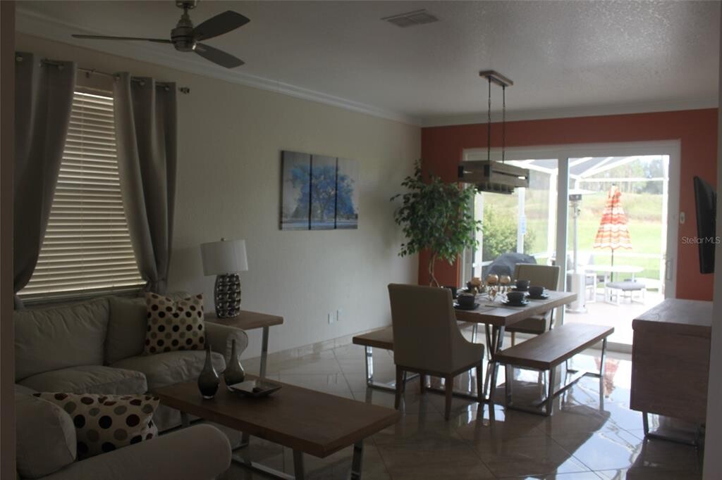 Turnkey rental property. This home comes fully furnished with TVs and is completely remodeled with a new roof roughly 3 years old. This home is located on the Golf community of Highlands Reserve with rear views of hole number 18. The Golf course is a full 18 hole Golf course with excellent views and one of highest elevations in Florida. The home has a large driveway and screened in heated pool. Income will be needed to be verified. Prospective tenant must pass a background and credit check. Link to application process will be provided by landlord. The fee for application is $43.99 per applicant. All persons that will reside in the property,18 and over,must apply. Pool cleaning is included in monthly rent. Landlord will entertain short term renters. MLS# S5140897