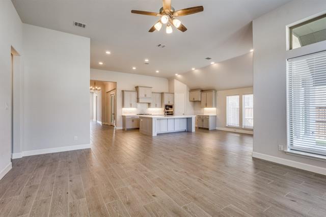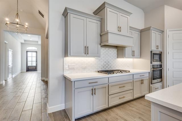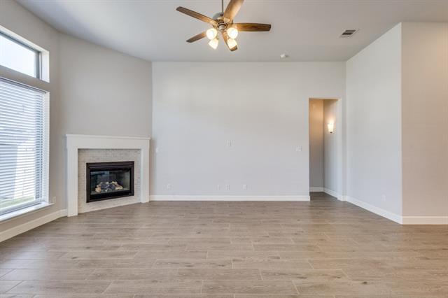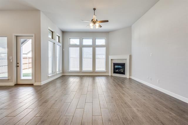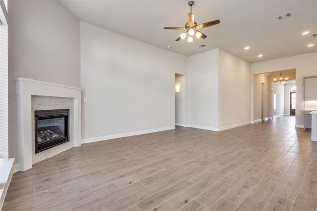 Introducing this stunning 4-bedroom, 4-bath single-family home featuring modern amenities and timeless style. The white brick exterior offers classic curb appeal, while the fenced backyard and covered patio create the perfect outdoor space for relaxing or entertaining. Inside, enjoy the spacious open-concept layout with hardwood floors and 12-foot ceilings throughout. The kitchen is a chef's dream, equipped with stainless steel appliances, a gas range, built-in microwave, dishwasher, and a beautiful custom tile backsplash. The living room boasts large windows that flood the space with natural light, complemented by a cozy gas fireplace with a custom tile surround. The master bathroom features a luxurious stand-up shower and a garden tub. Additional highlights include a 2-car garage, recessed lighting, and elegant design touches in this new construction home. Don’t miss out on this beautiful, move-in ready home!